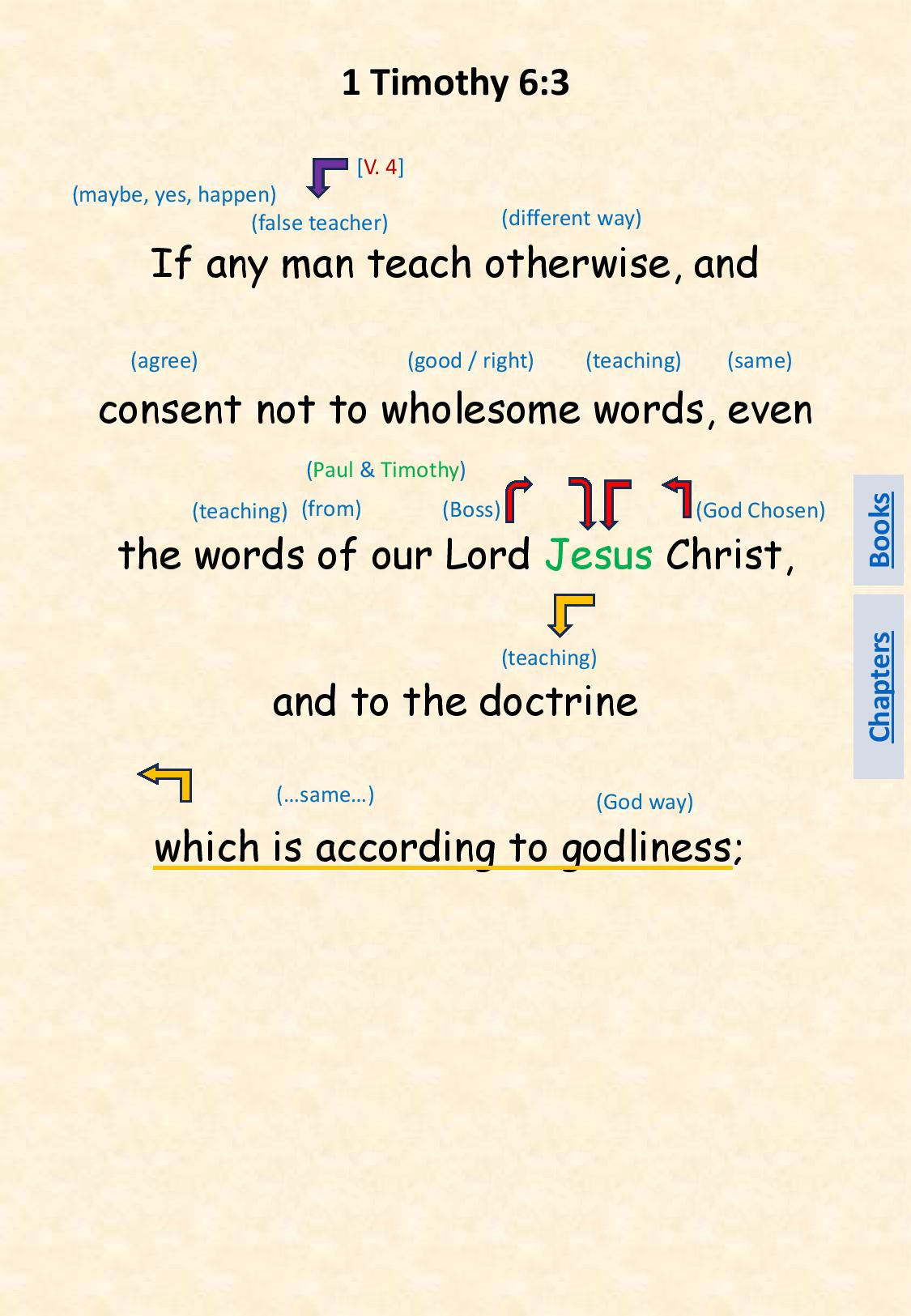 1Ti 6:3 If any man teach otherwise, and consent not to wholesome words, even the words of our Lord Jesus Christ, and to the doctrine which is according to godliness;