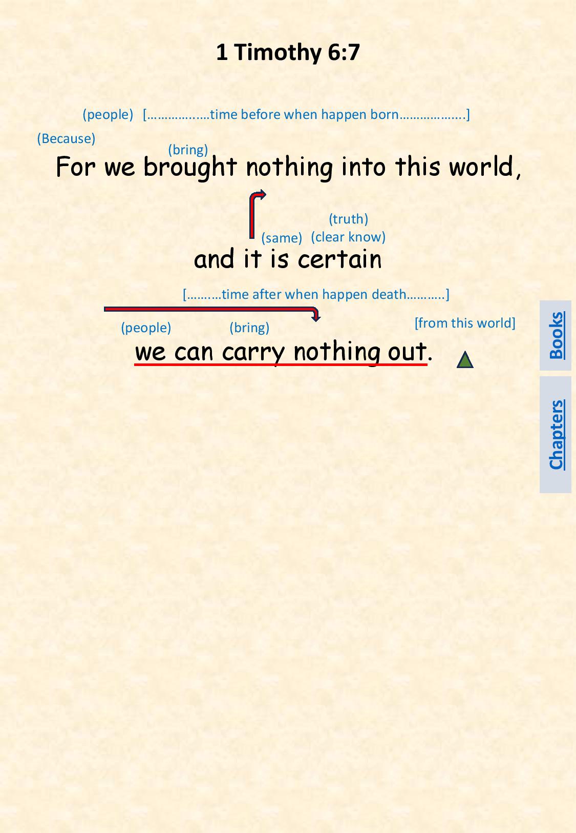 1Ti 6:7 For we brought nothing into this world, and it is certain we can carry nothing out.