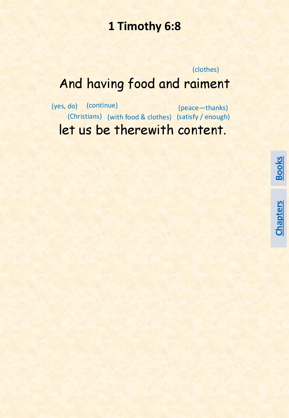 1Ti 6:8 And having food and raiment let us be therewith content.