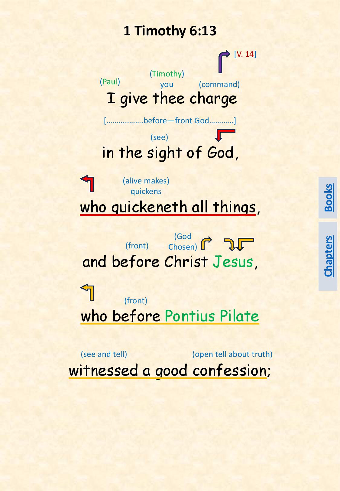 1Ti 6:13 I give thee charge in the sight of God, who quickeneth all things, and before Christ Jesus, who before Pontius Pilate witnessed a good confession;