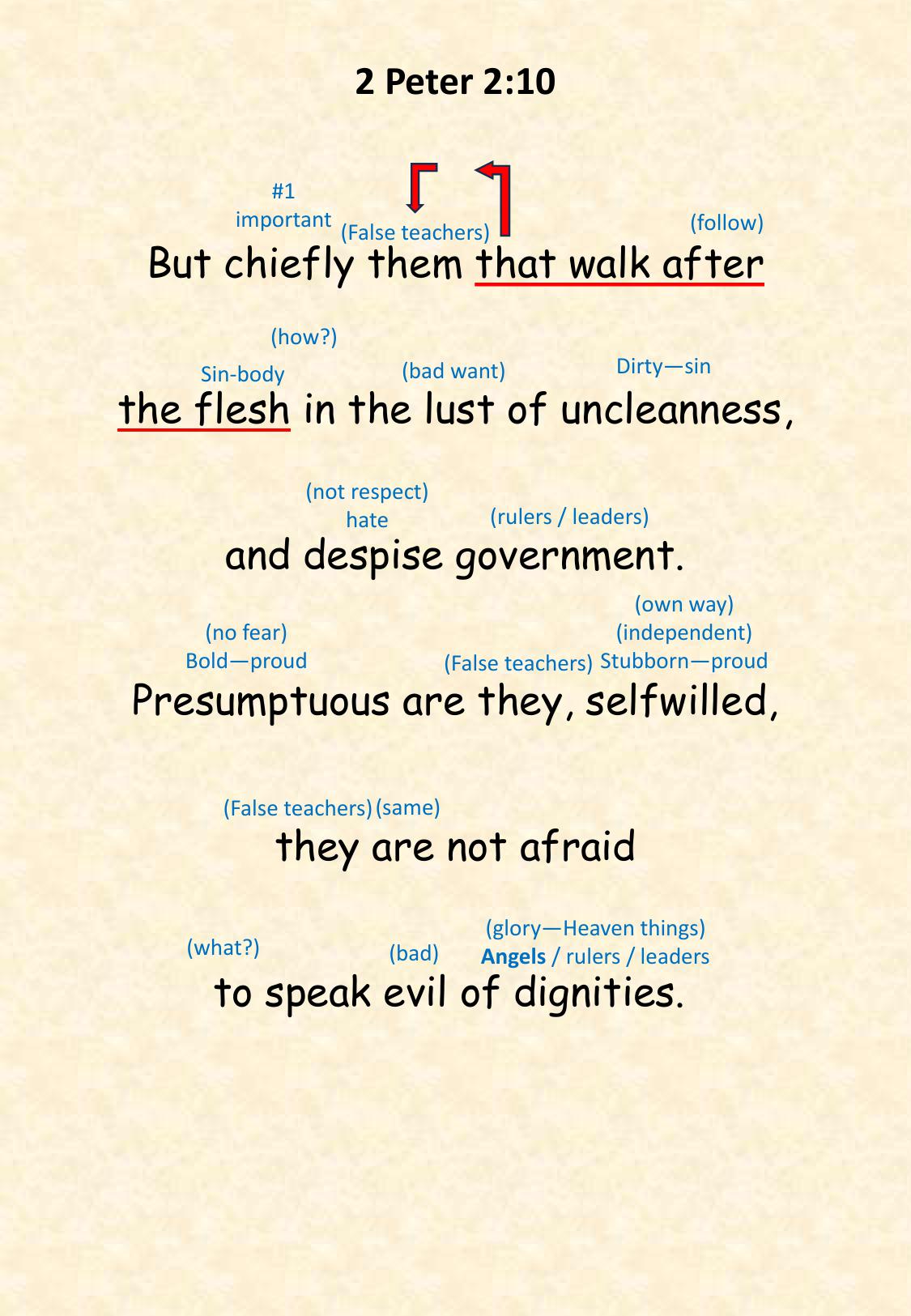 2Pe 2:10 But chiefly them that walk after the flesh in the lust of uncleanness, and despise government. Presumptuous are they, selfwilled, they are not afraid to speak evil of dignities.