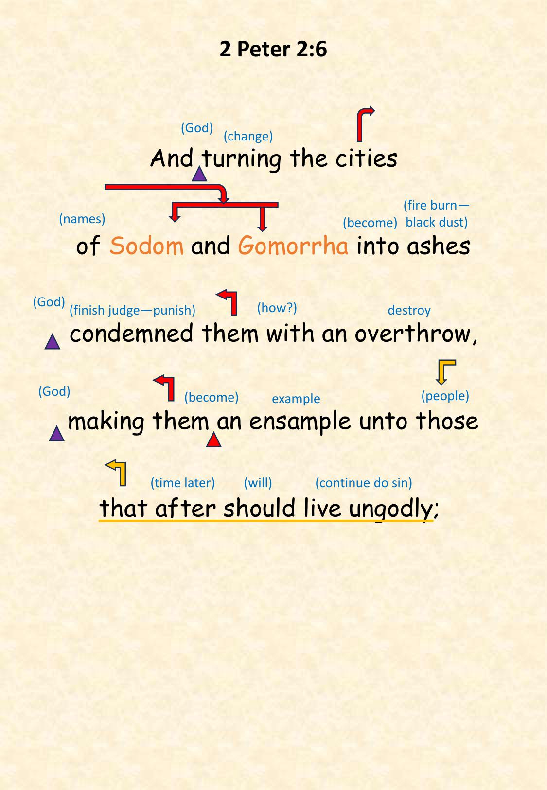 2Pe 2:6 And turning the cities of Sodom and Gomorrha into ashes condemned them with an overthrow, making them an ensample unto those that after should live ungodly;