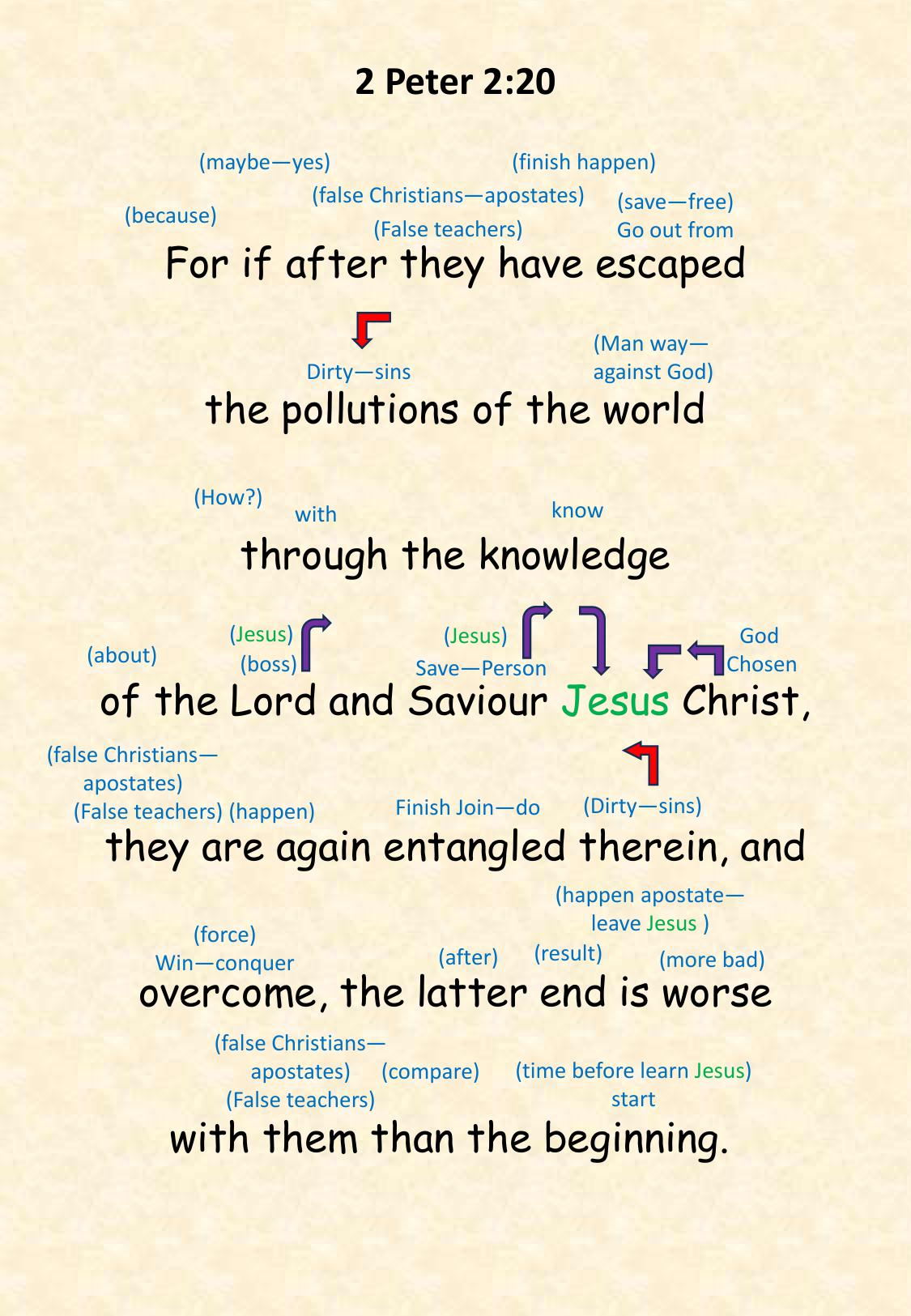 2Pe 2:20 For if after they have escaped the pollutions of the world through the knowledge of the Lord and Saviour Jesus Christ, they are again entangled therein, and overcome, the latter end is worse with them than the beginning.