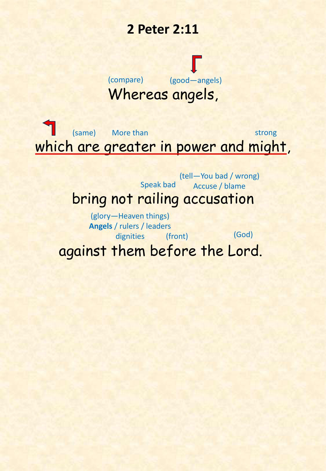 2Pe 2:11 Whereas angels, which are greater in power and might, bring not railing accusation against them before the Lord.