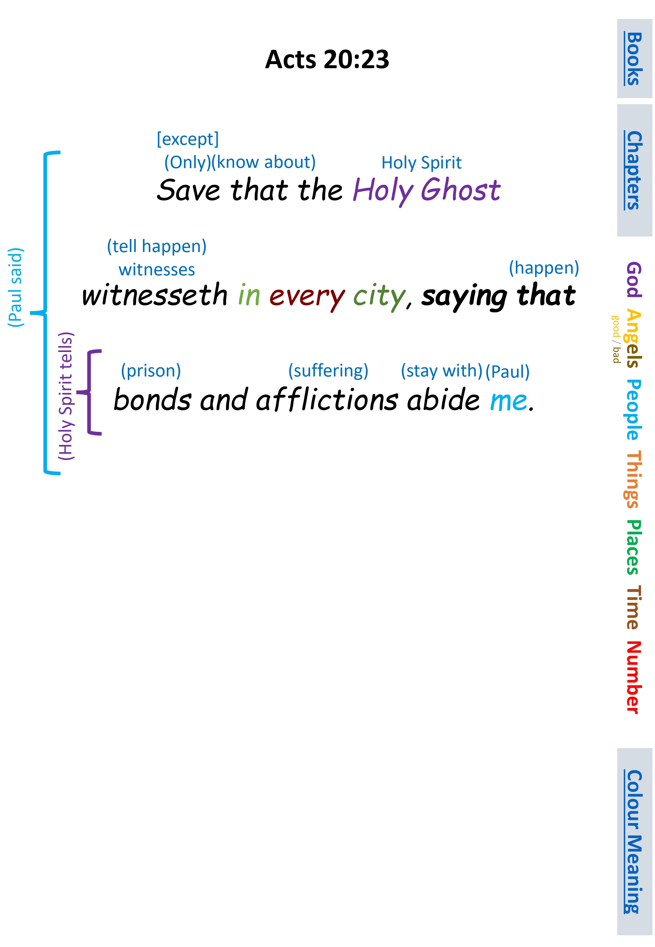 Act 20:23 Save that the Holy Ghost witnesseth in every city, saying that bonds and afflictions abide me.
