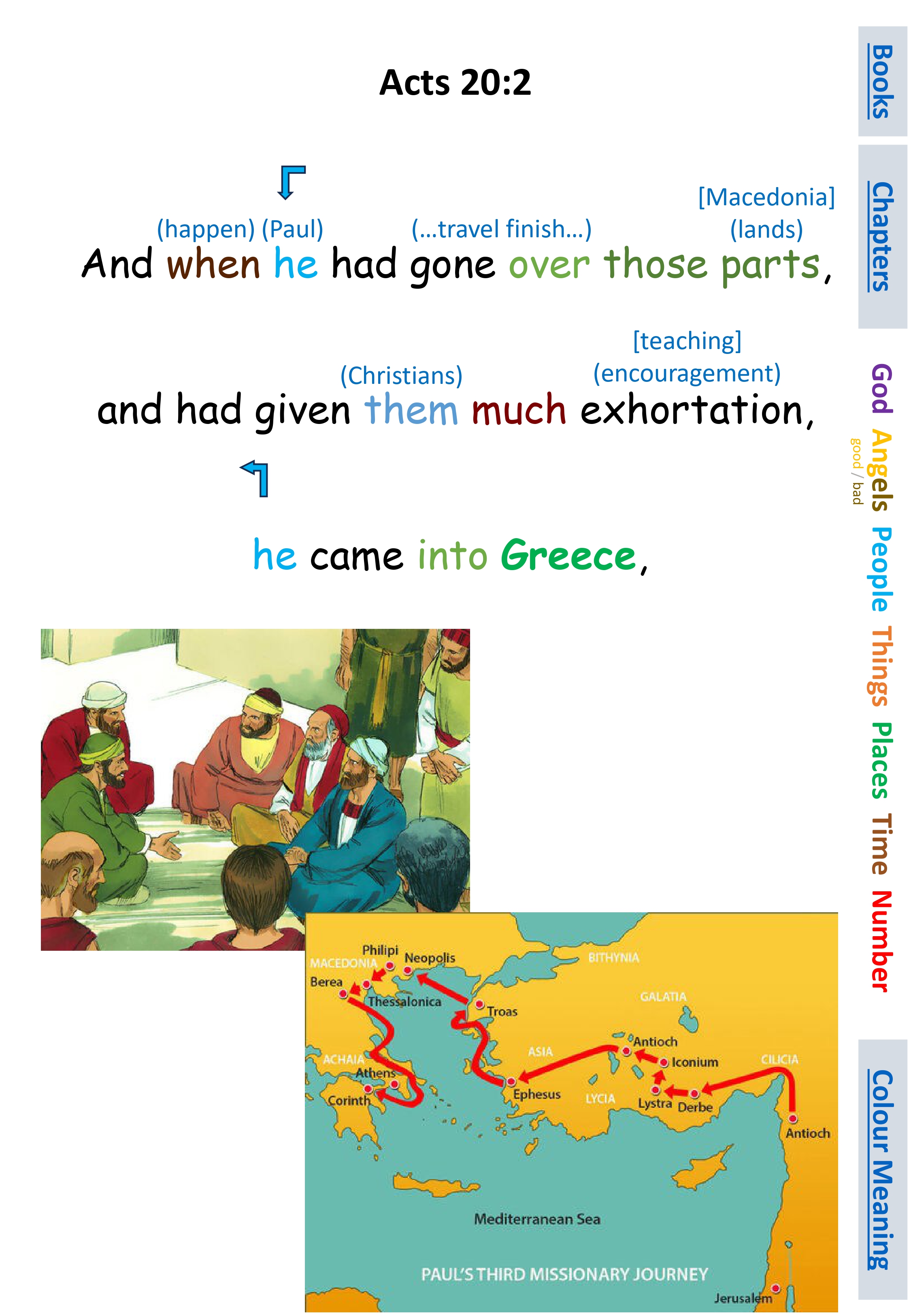 Act 20:2 And when he had gone over those parts, and had given them much exhortation, he came into Greece,