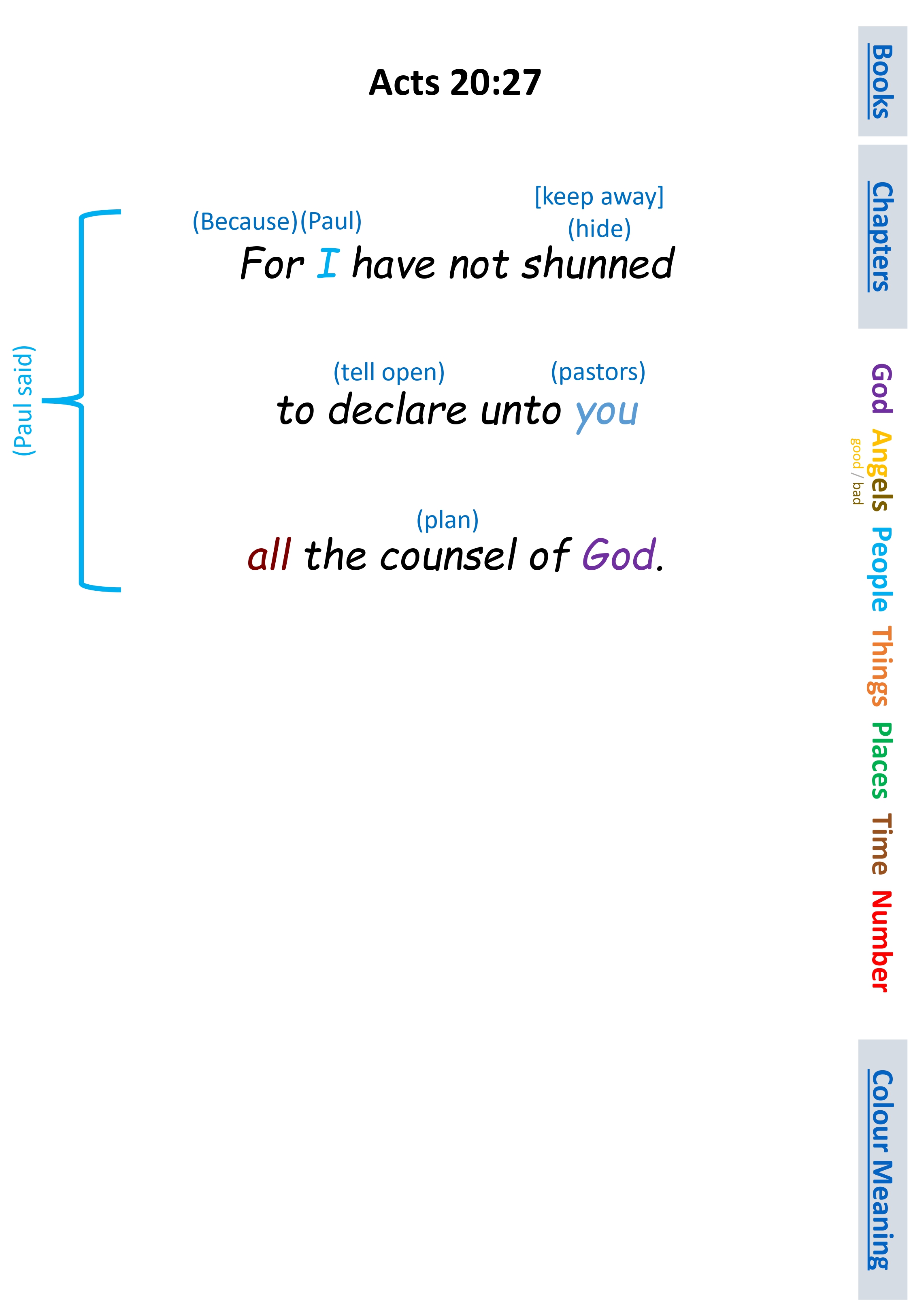 Act 20:27 For I have not shunned to declare unto you all the counsel of God.