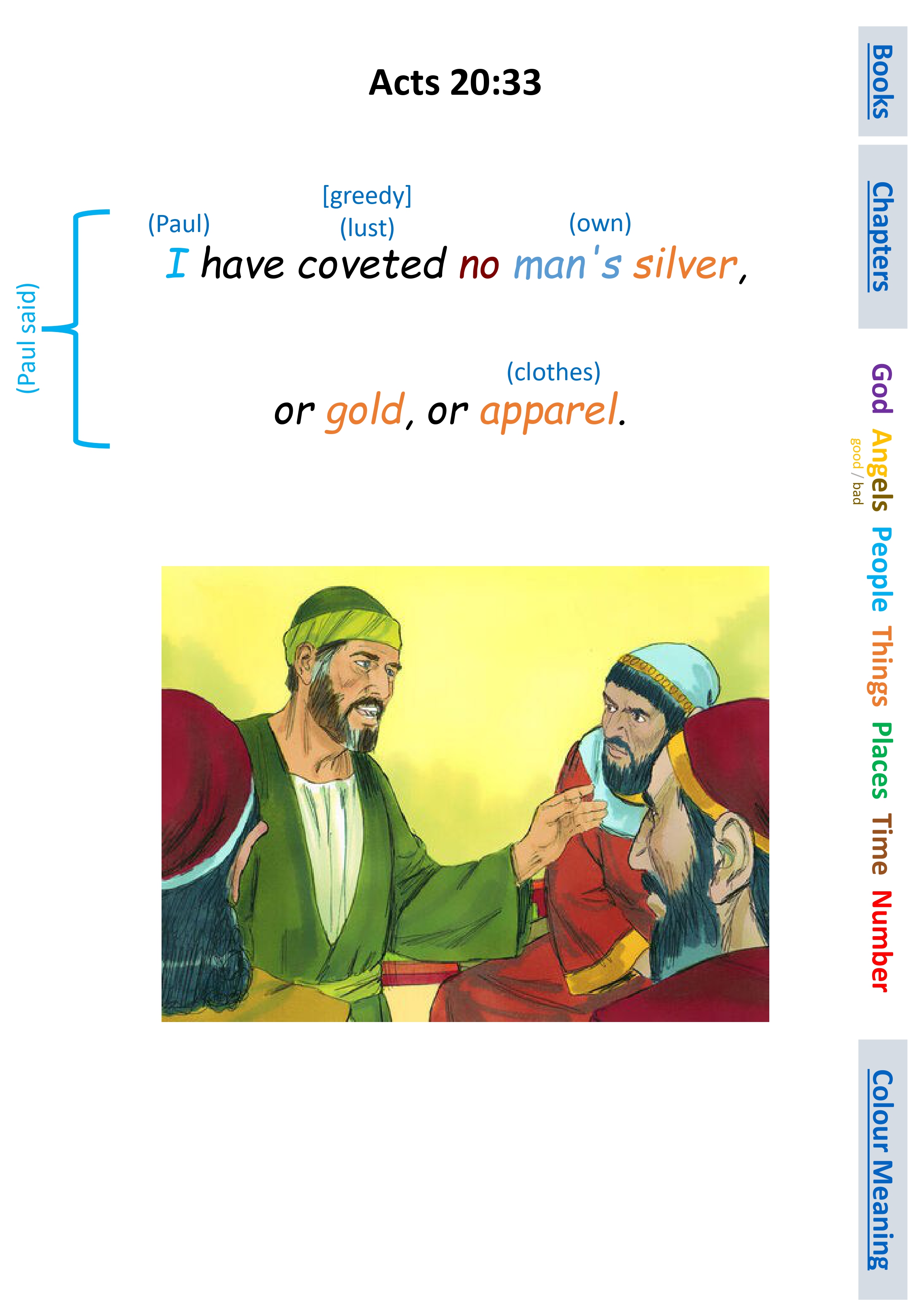 Act 20:33 I have coveted no man's silver, or gold, or apparel.