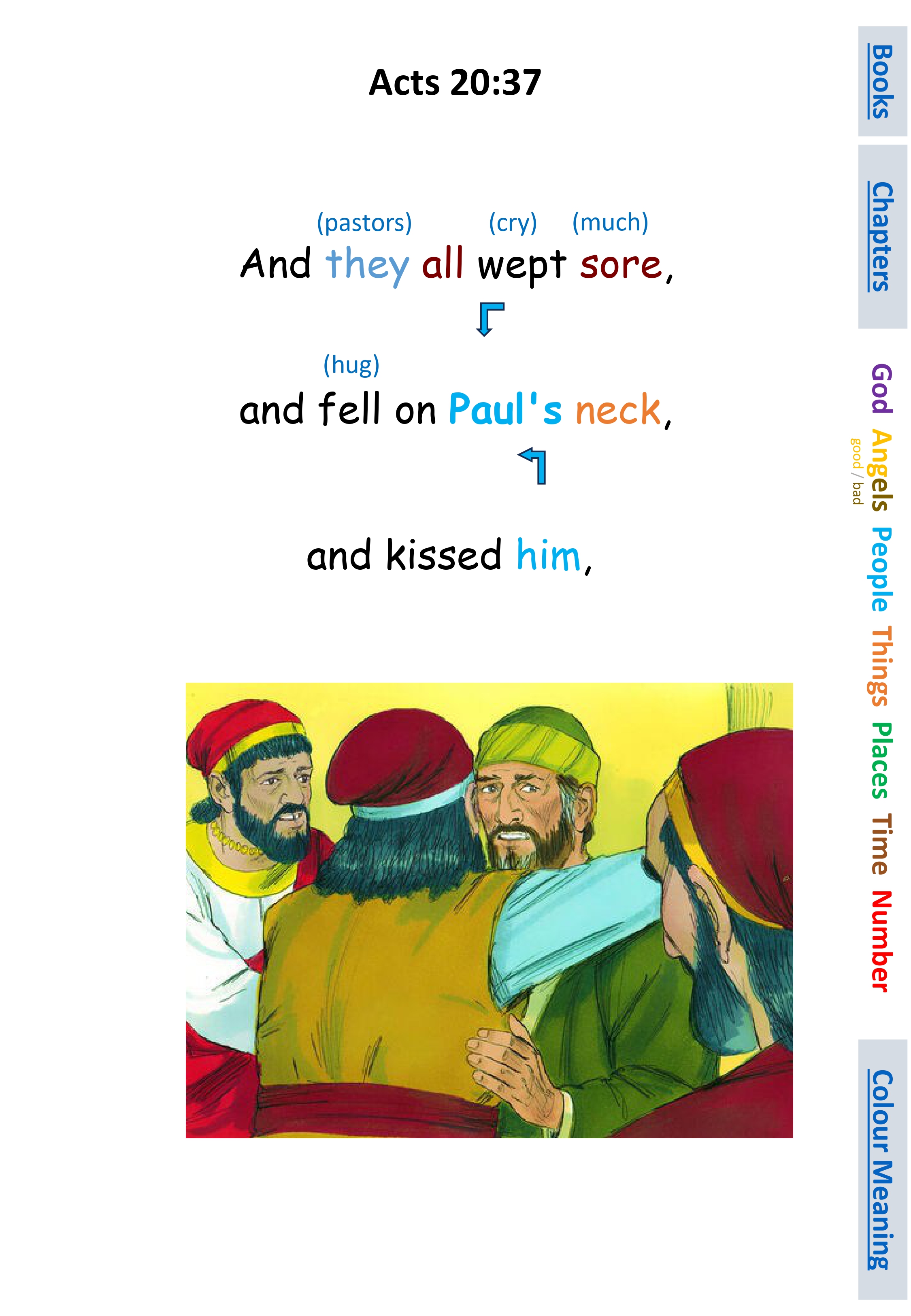 Act 20:37 And they all wept sore, and fell on Paul's neck, and kissed him,