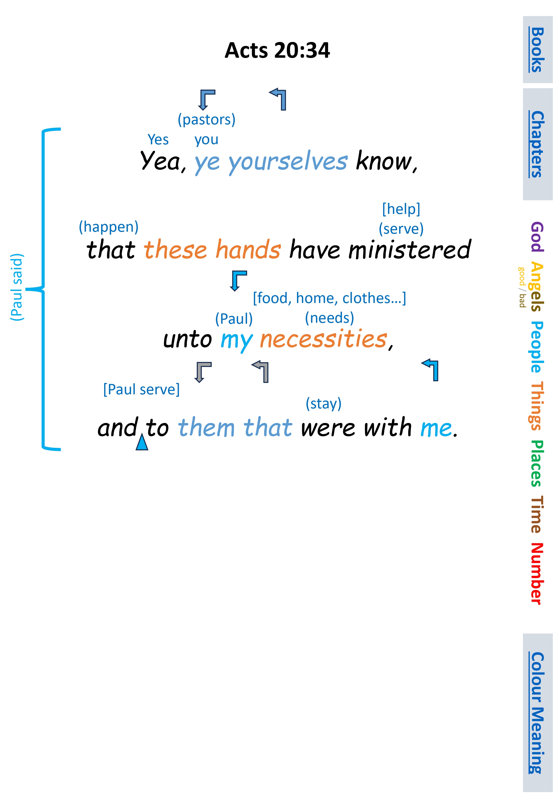 Act 20:34 Yea, ye yourselves know, that these hands have ministered unto my necessities, and to them that were with me.