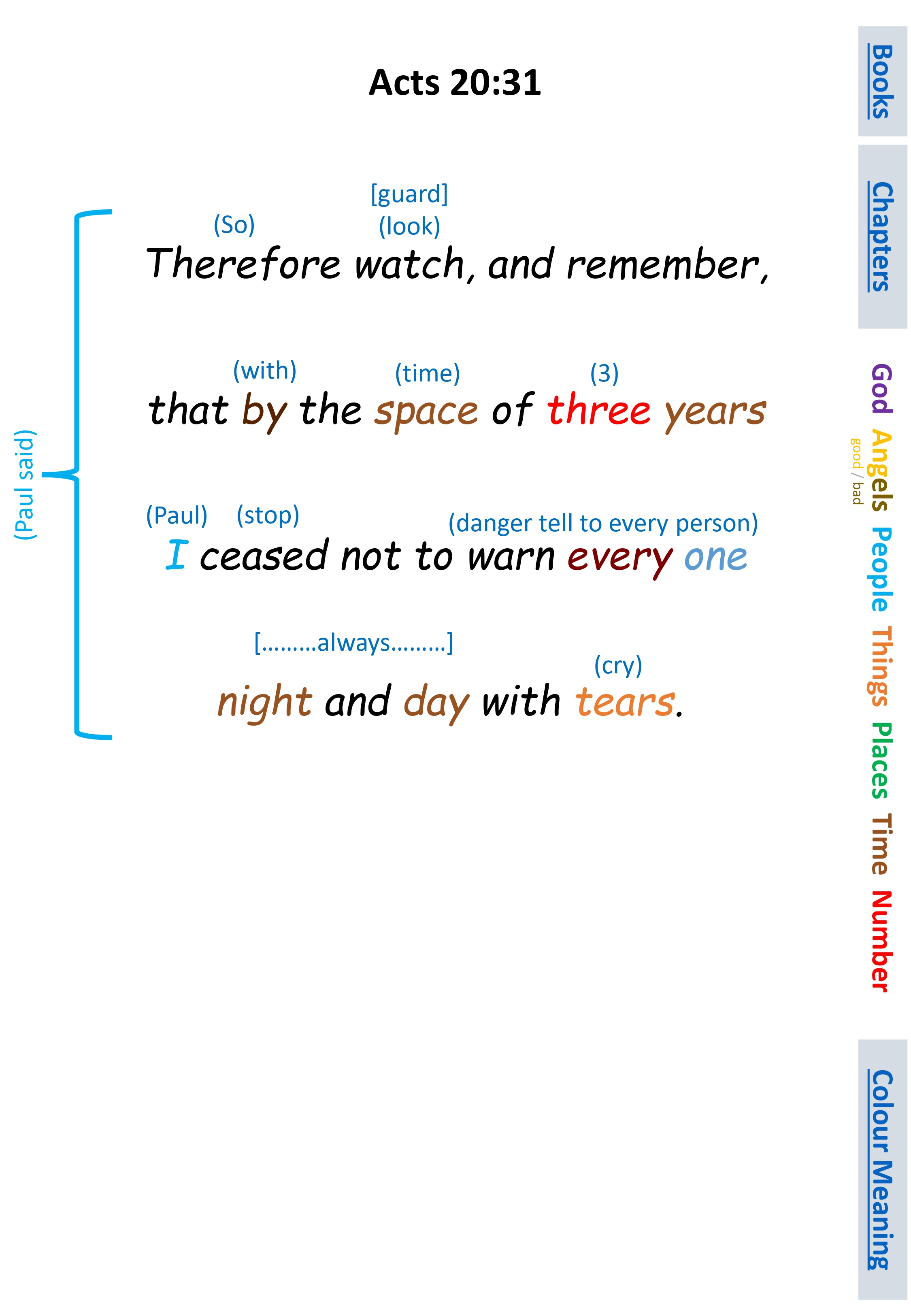 Act 20:31 Therefore watch, and remember, that by the space of three years I ceased not to warn every one night and day with tears.