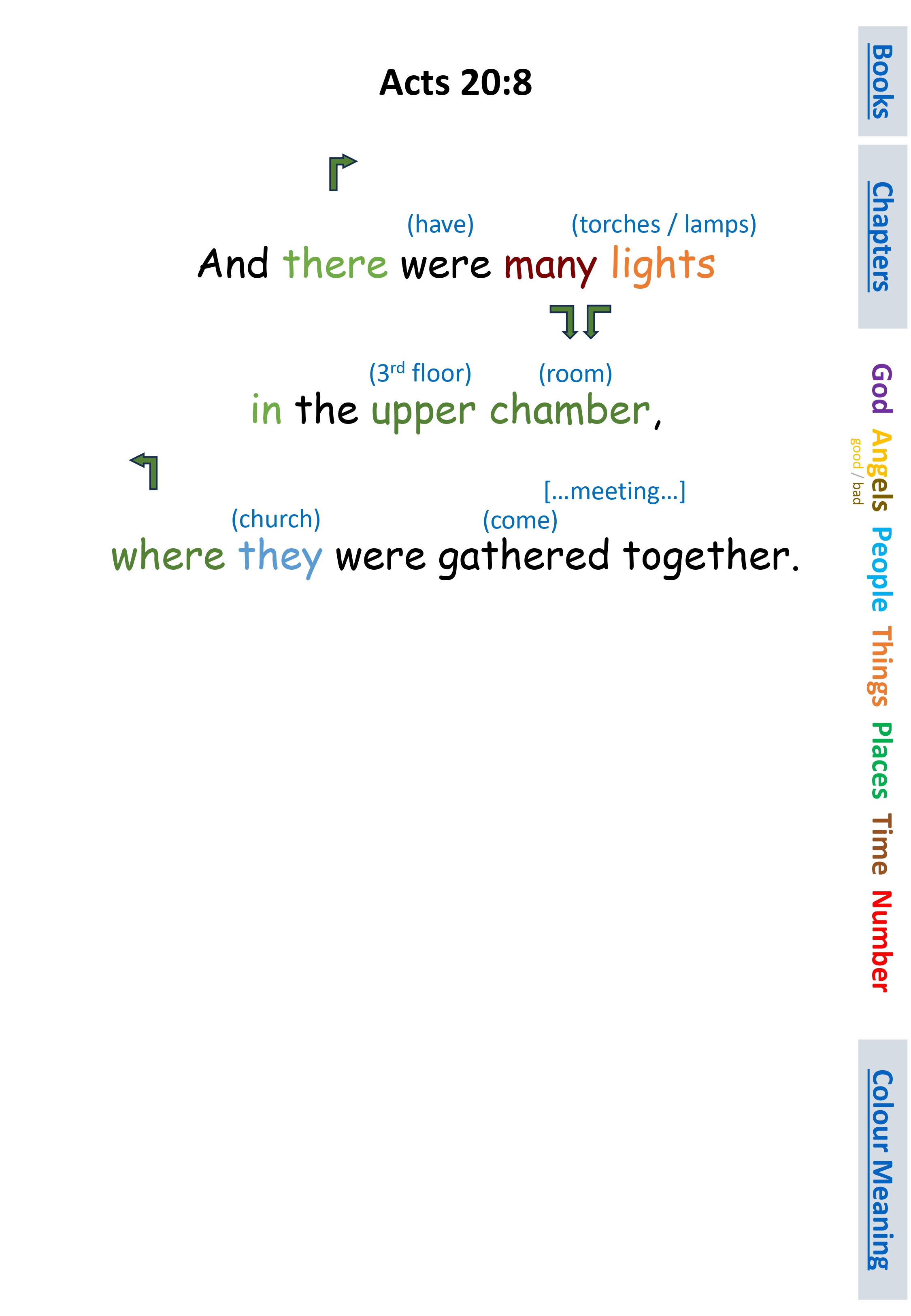 Act 20:8 And there were many lights in the upper chamber, where they were gathered together.