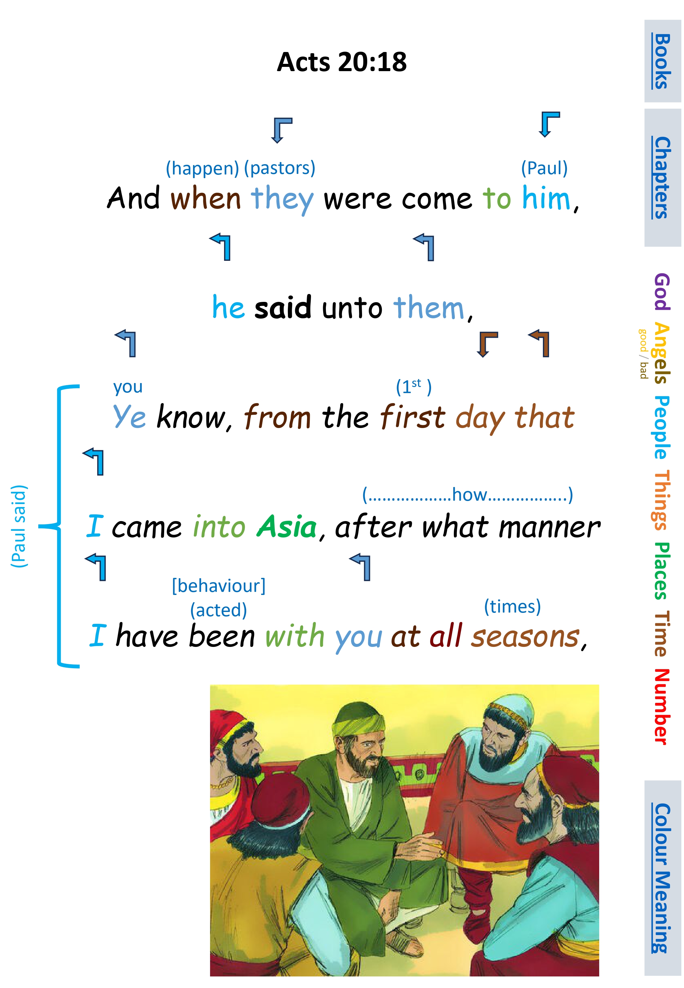 Act 20:18 And when they were come to him, he said unto them, Ye know, from the first day that I came into Asia, after what manner I have been with you at all seasons,