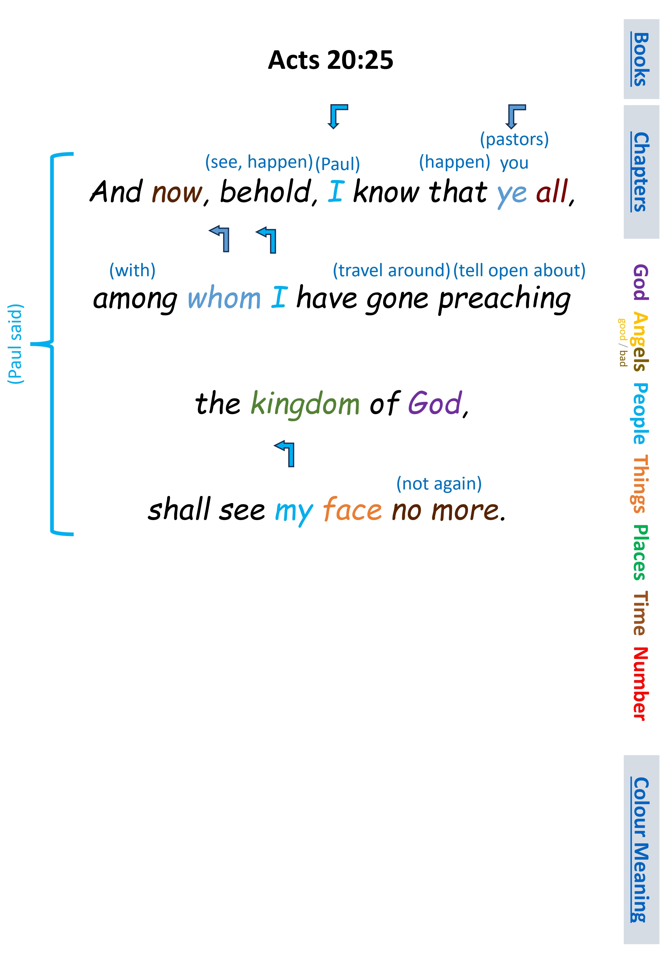 Act 20:25 And now, behold, I know that ye all, among whom I have gone preaching the kingdom of God, shall see my face no more.