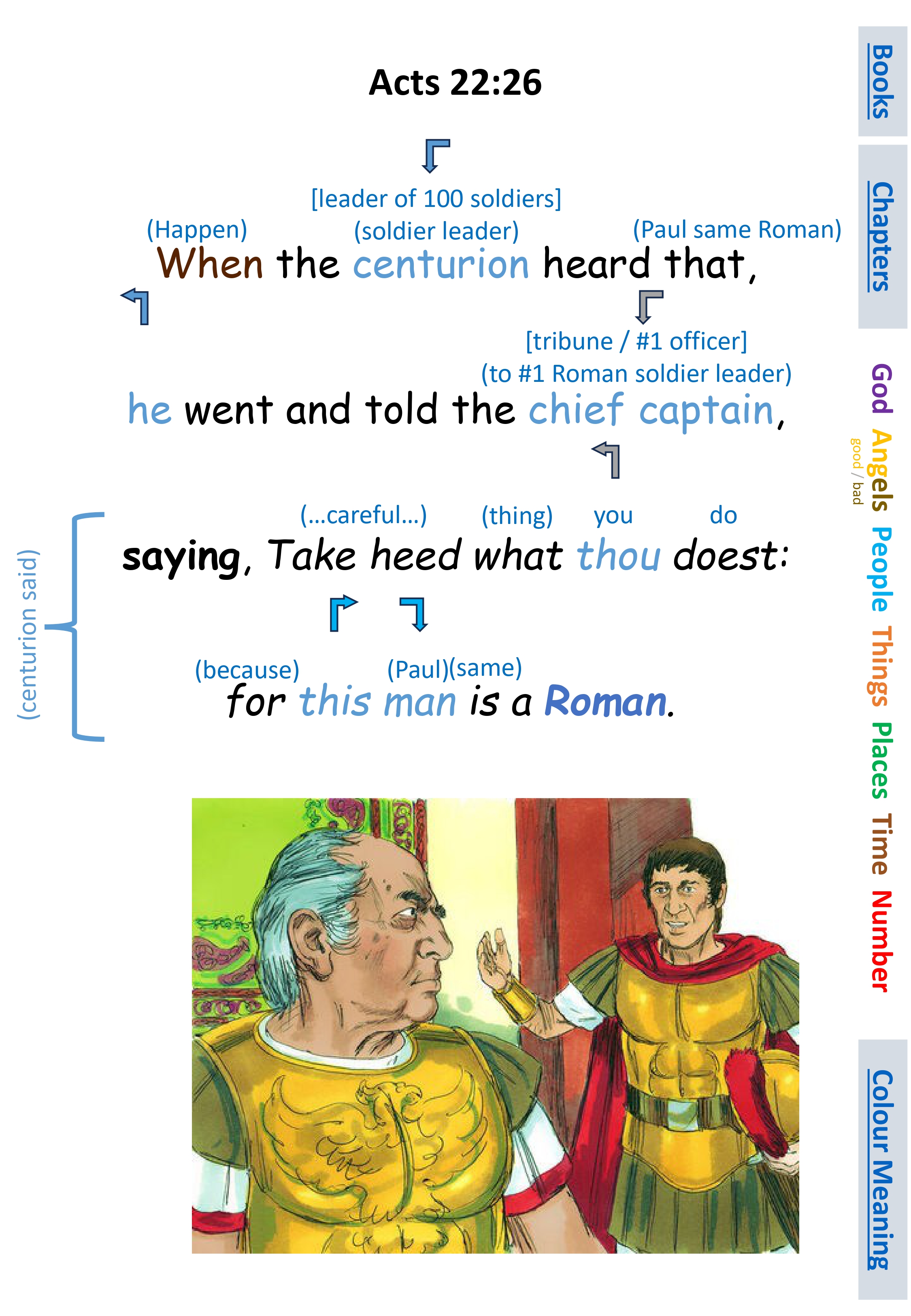 Act 22:26 When the centurion heard that, he went and told the chief captain, saying, Take heed what thou doest: for this man is a Roman.