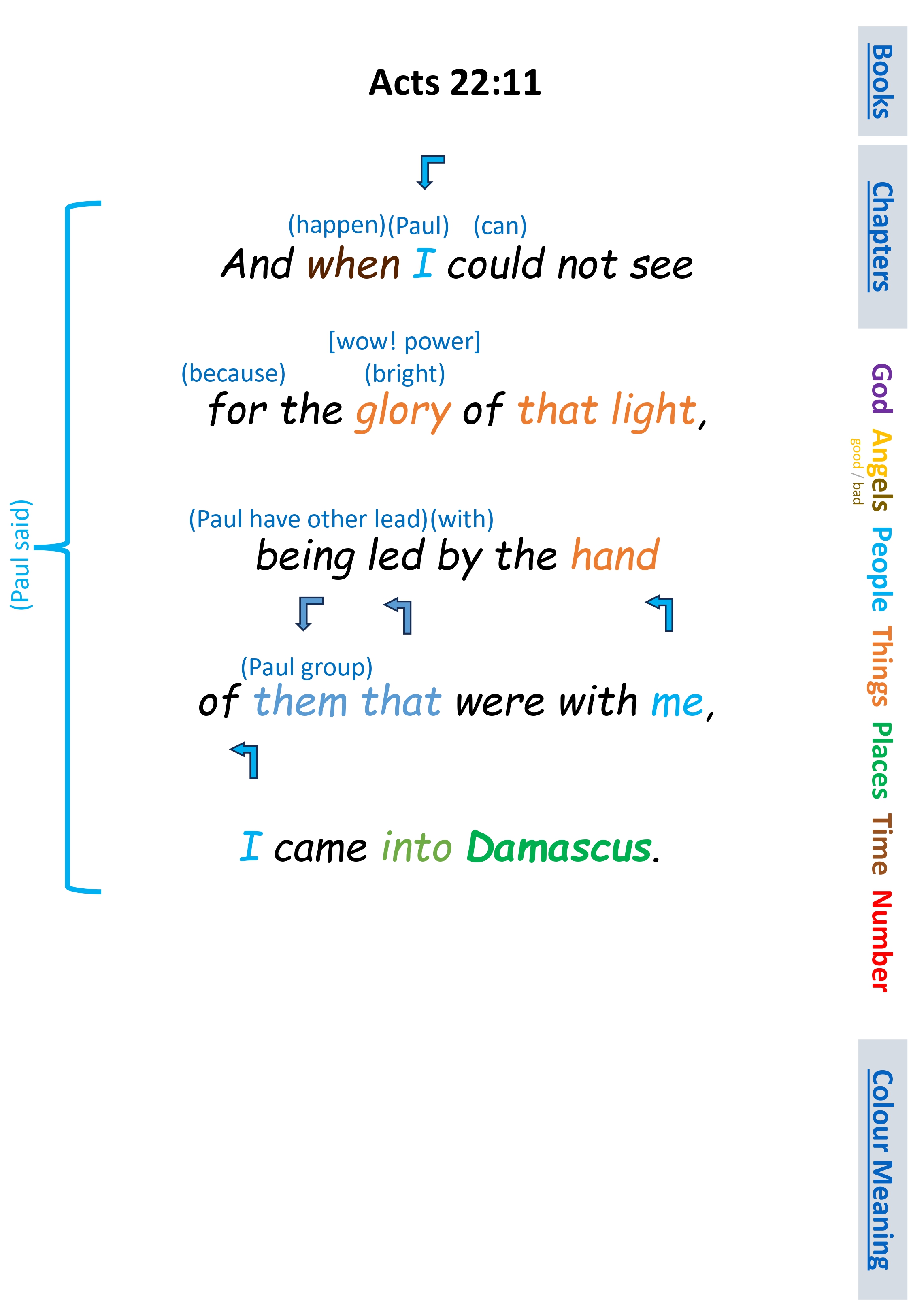 Act 22:11 And when I could not see for the glory of that light, being led by the hand of them that were with me, I came into Damascus.