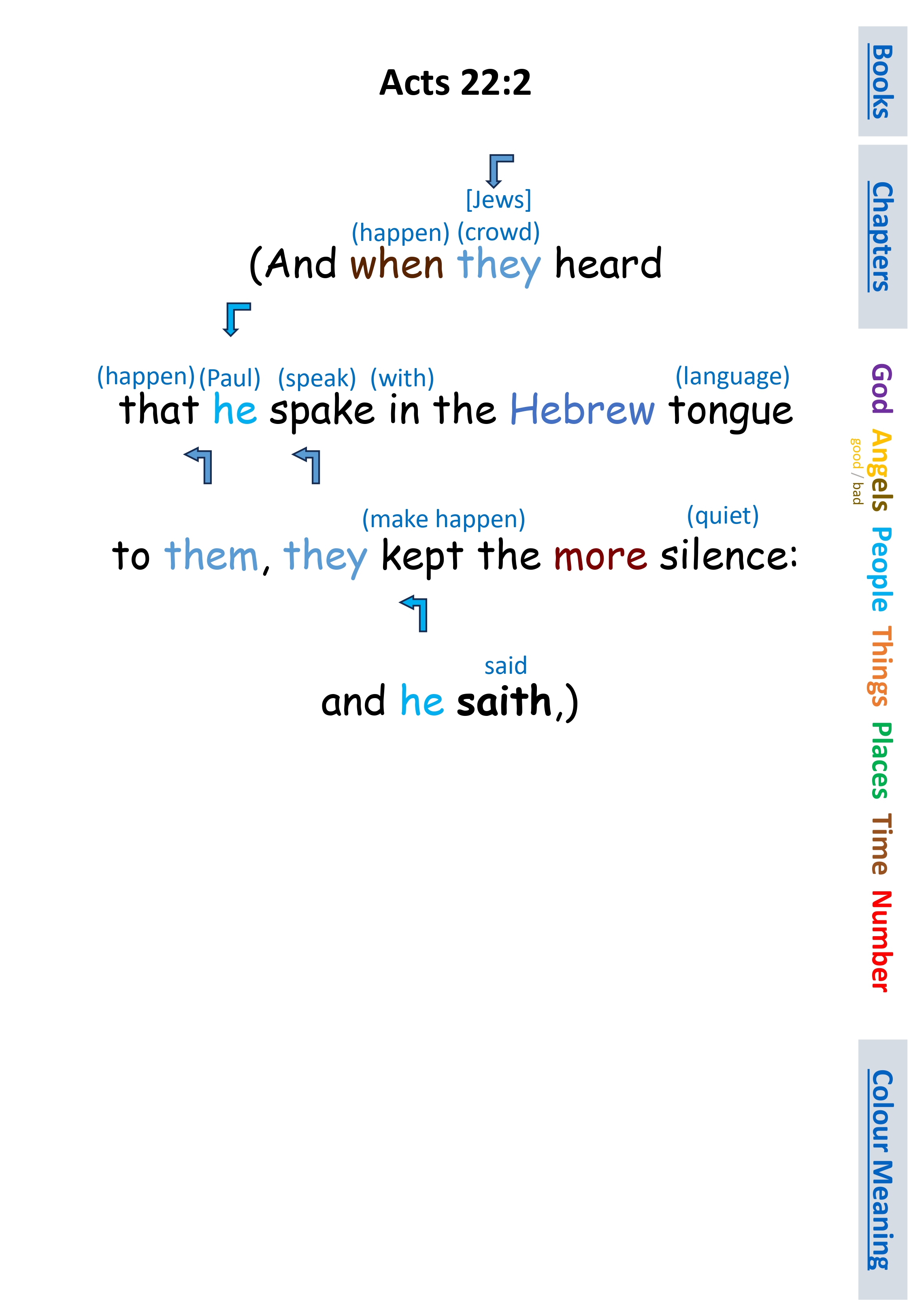 Act 22:2 (And when they heard that he spake in the Hebrew tongue to them, they kept the more silence: and he saith,)