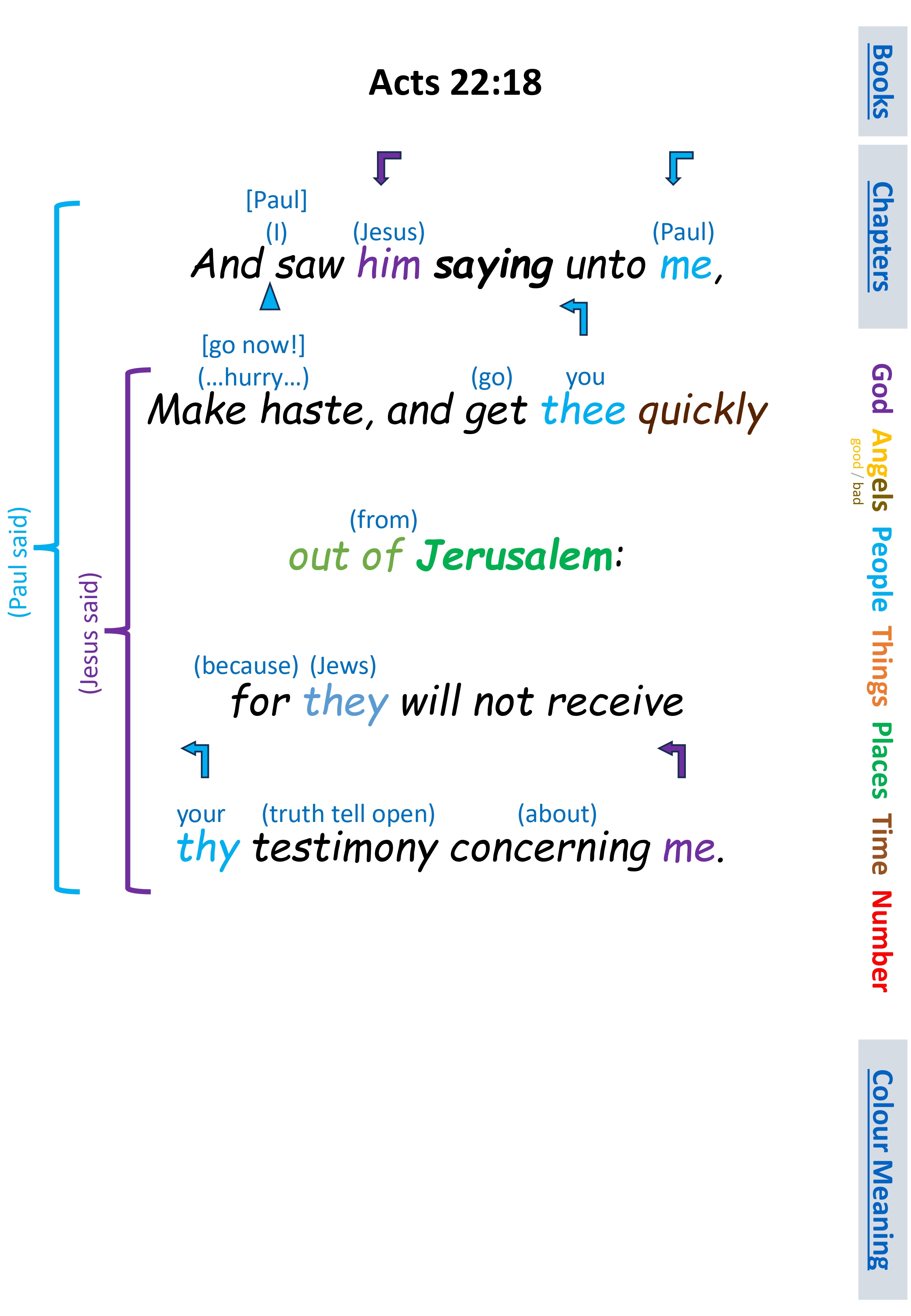 Act 22:18 And saw him saying unto me, Make haste, and get thee quickly out of Jerusalem: for they will not receive thy testimony concerning me.