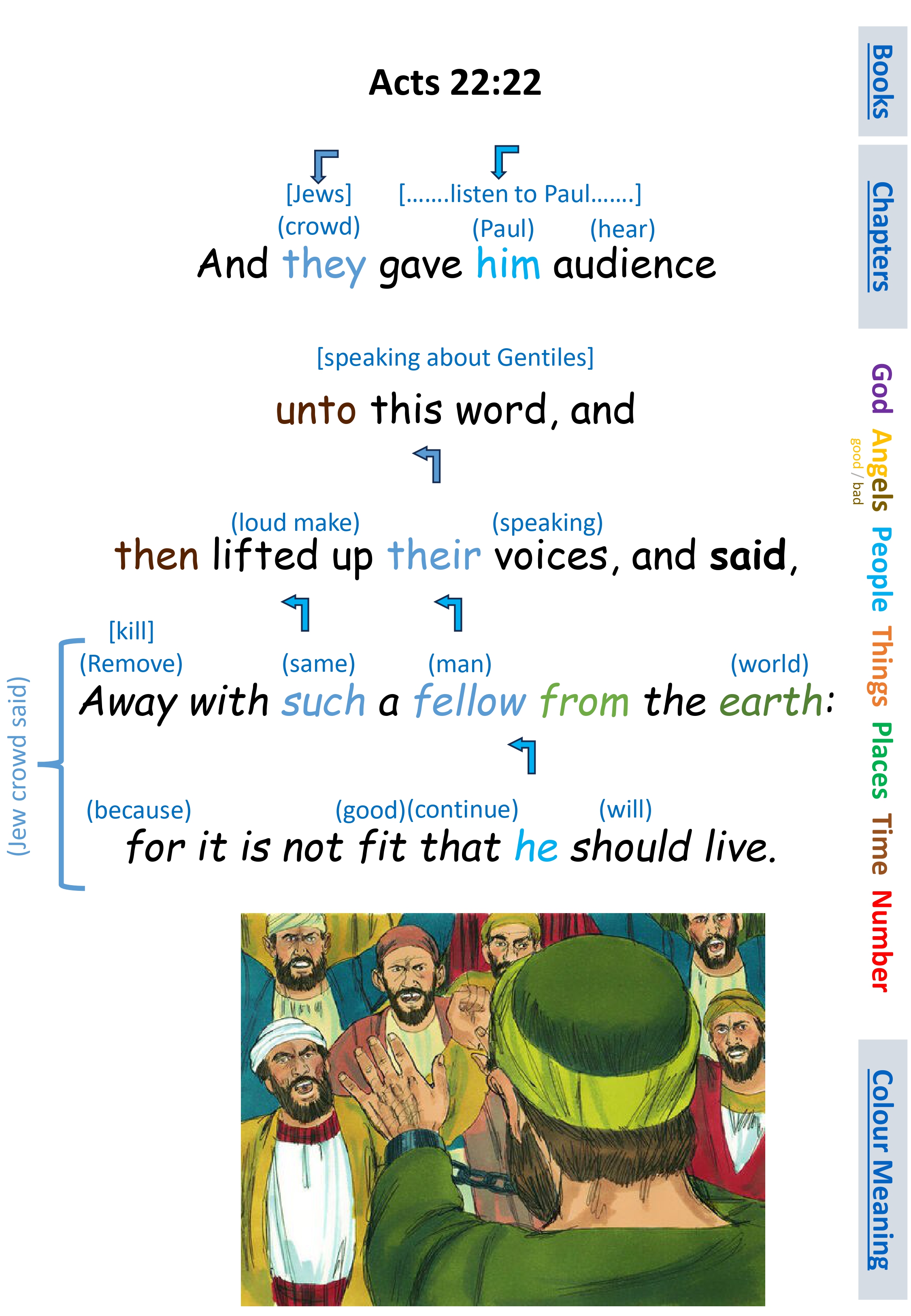 Act 22:22 And they gave him audience unto this word, and then lifted up their voices, and said, Away with such a fellow from the earth: for it is not fit that he should live.