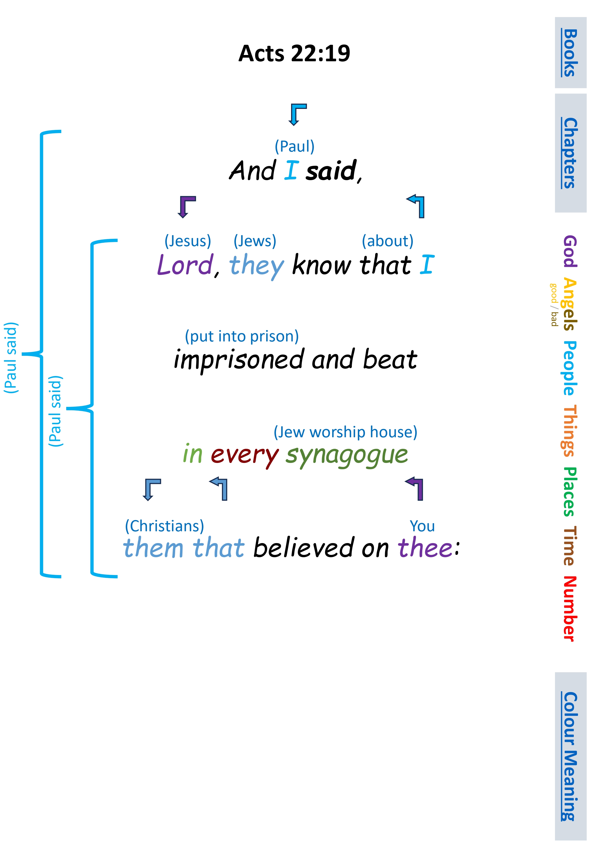 Act 22:19 And I said, Lord, they know that I imprisoned and beat in every synagogue them that believed on thee: