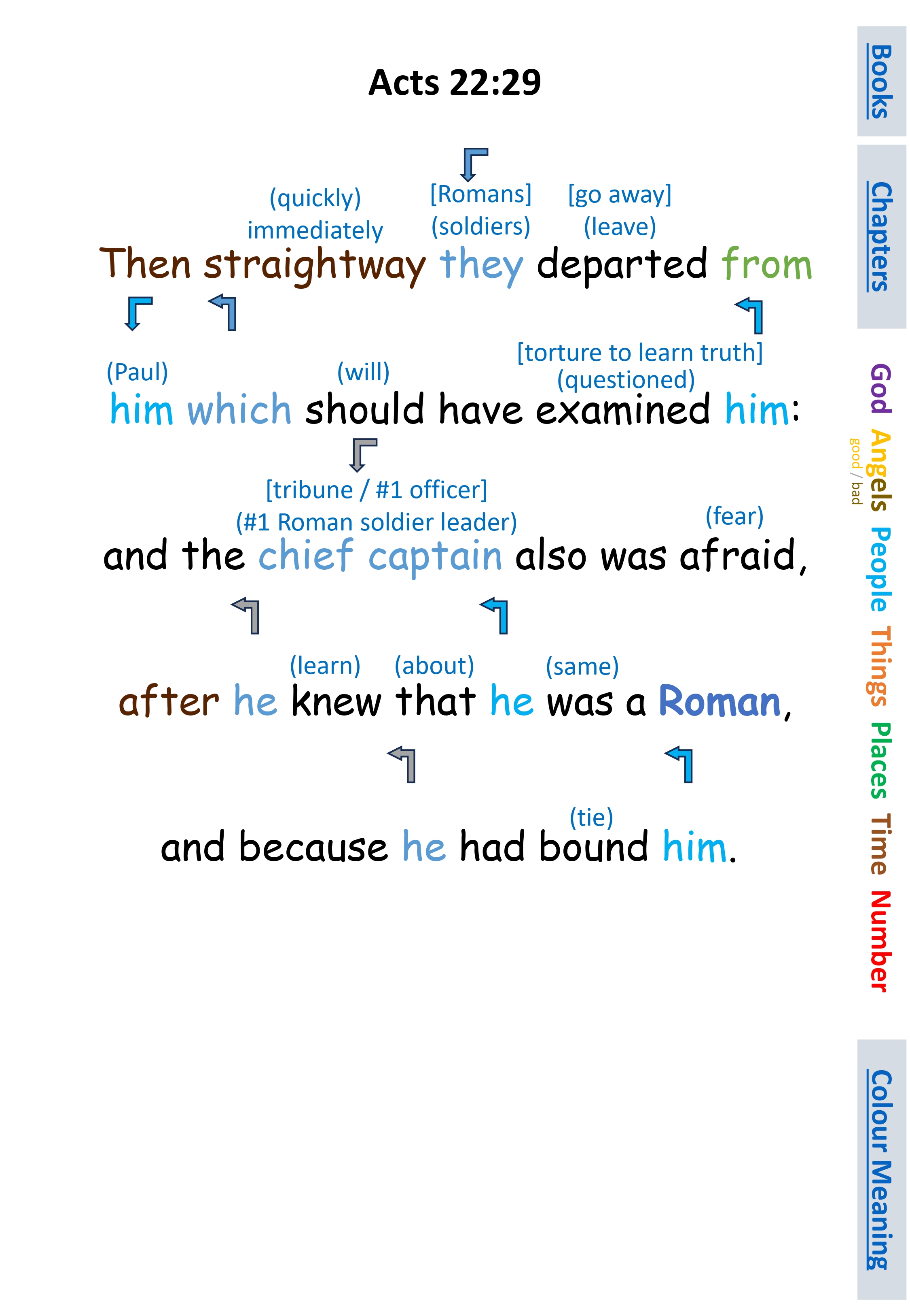 Act 22:29 Then straightway they departed from him which should have examined him: and the chief captain also was afraid, after he knew that he was a Roman, and because he had bound him.