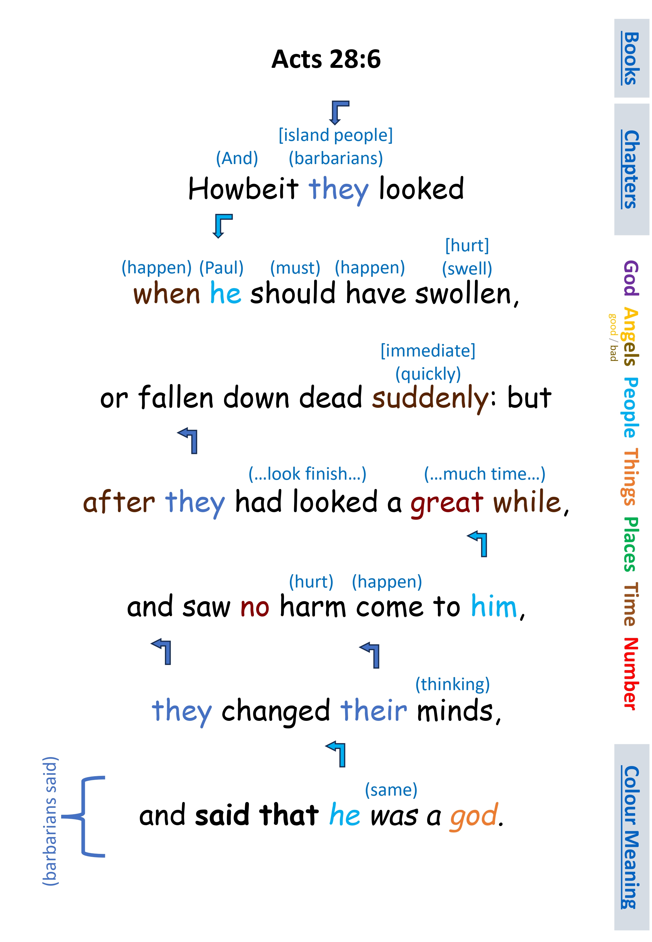 Act 28:6 Howbeit they looked when he should have swollen, or fallen down dead suddenly: but after they had looked a great while, and saw no harm come to him, they changed their minds, and said that he was a god.