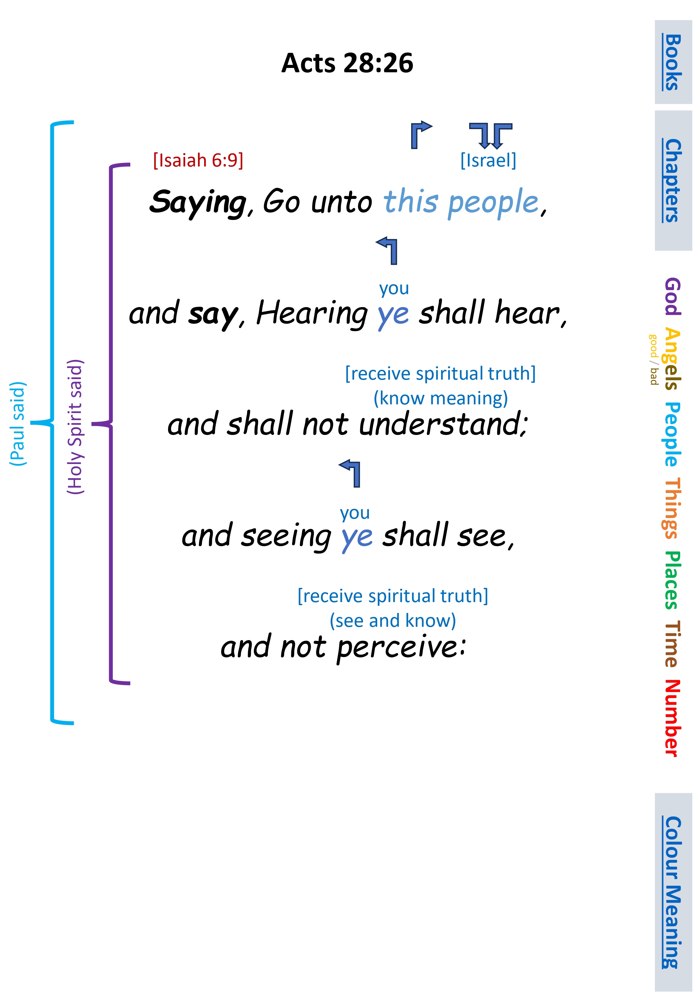 Act 28:26 Saying, Go unto this people, and say, Hearing ye shall hear, and shall not understand; and seeing ye shall see, and not perceive: