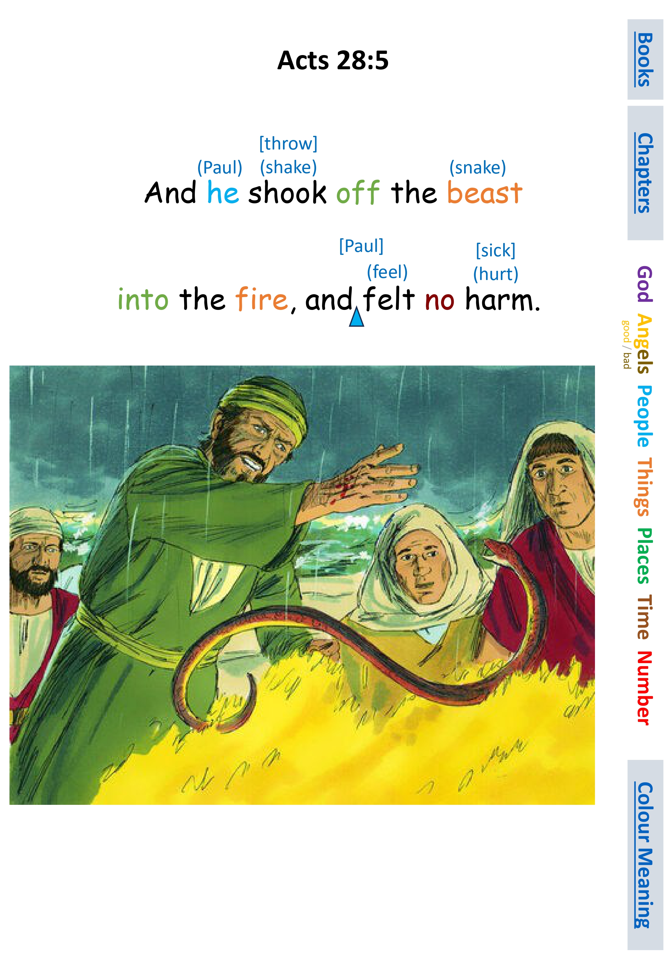 Act 28:5 And he shook off the beast into the fire, and felt no harm.