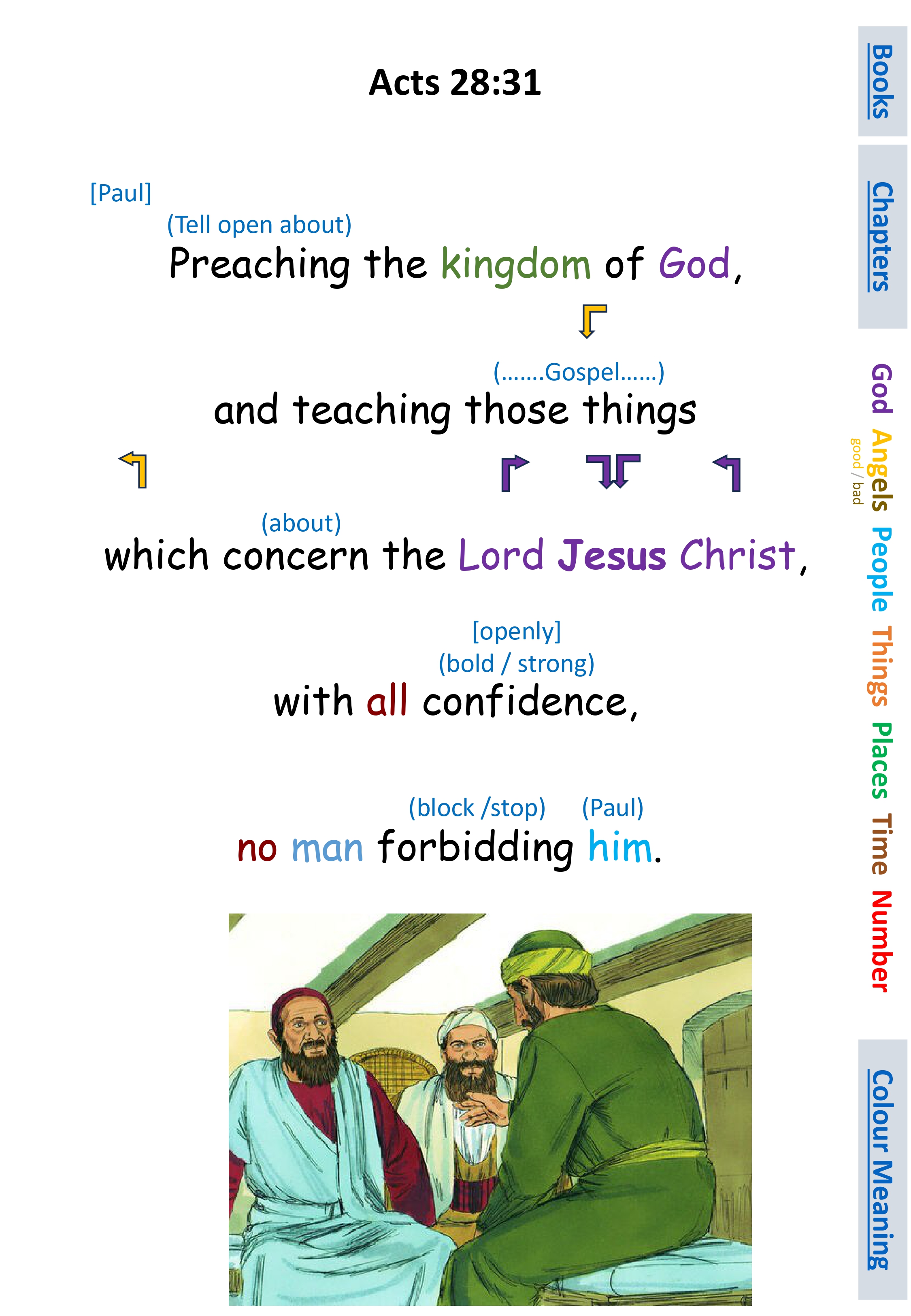 Act 28:31 Preaching the kingdom of God, and teaching those things which concern the Lord Jesus Christ, with all confidence, no man forbidding him.