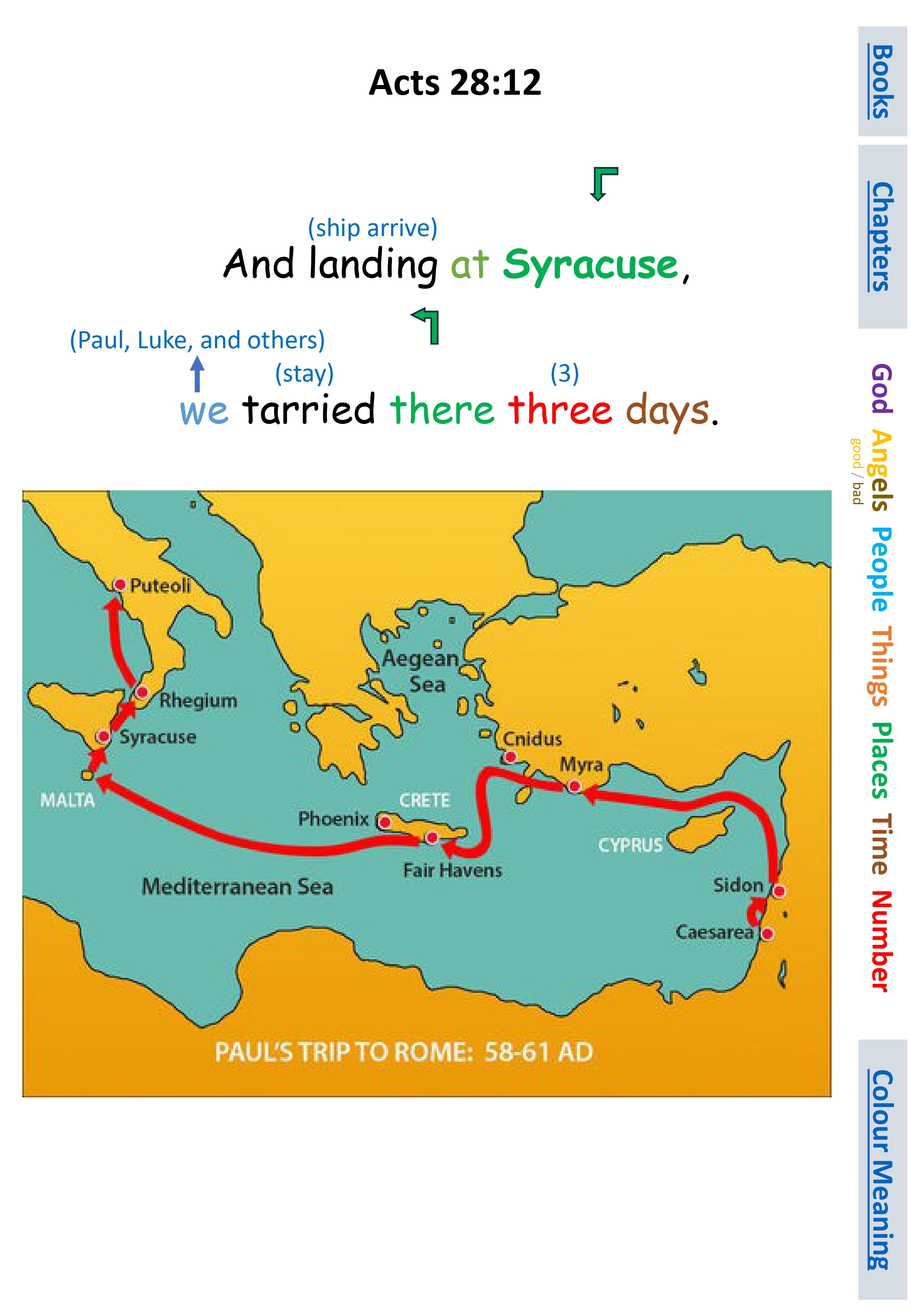 Act 28:12 And landing at Syracuse, we tarried there three days.