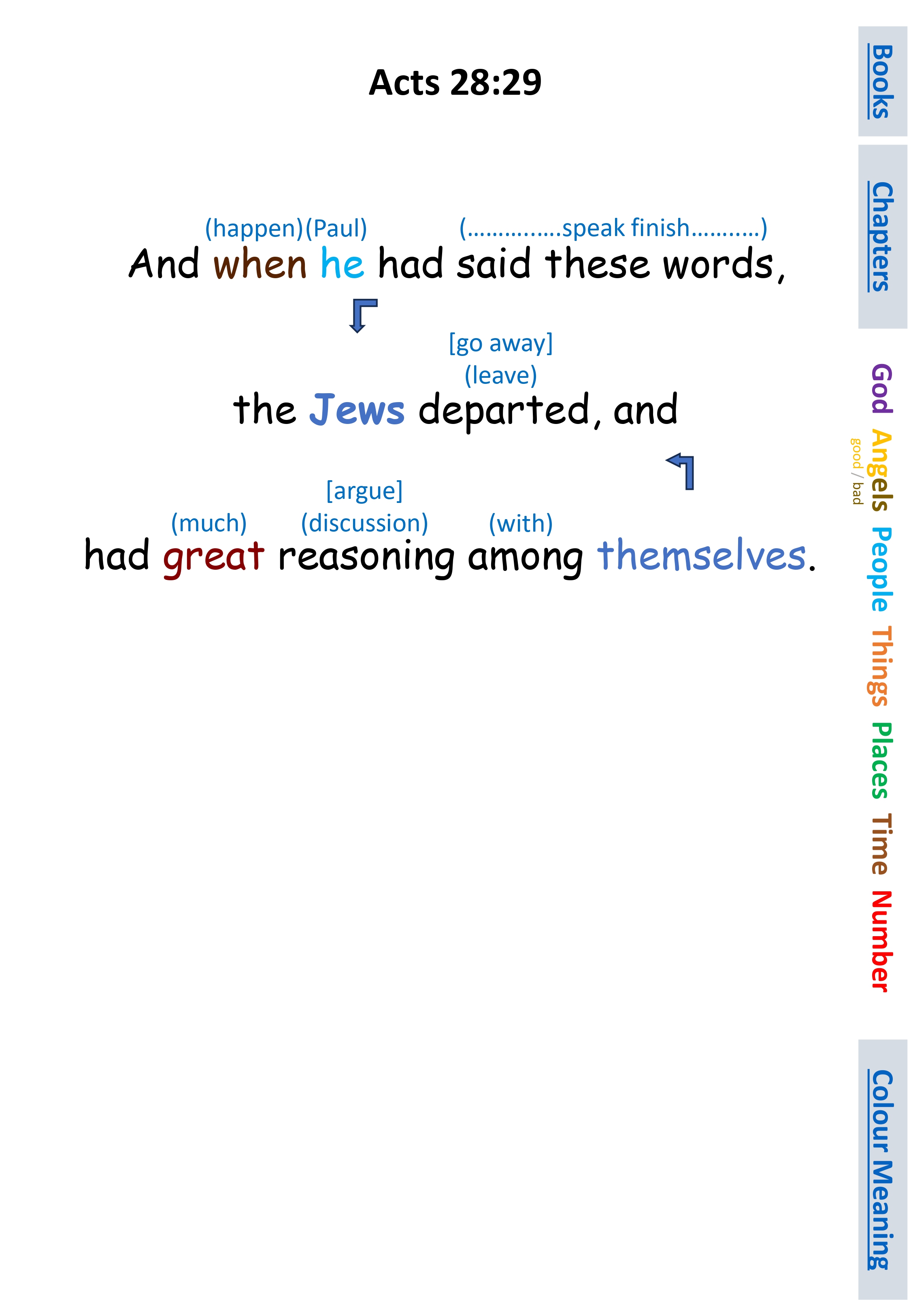Act 28:29 And when he had said these words, the Jews departed, and had great reasoning among themselves.
