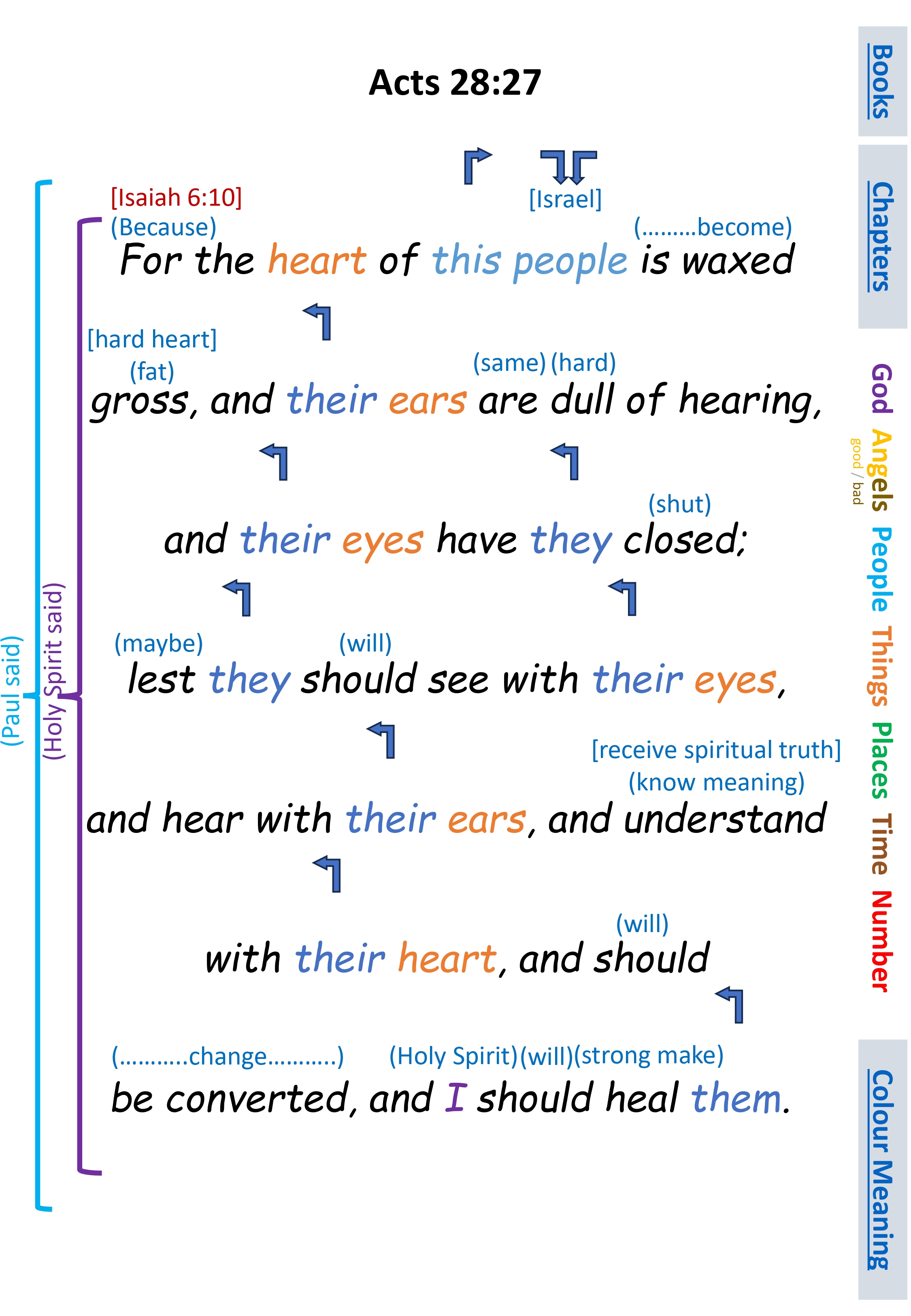 Act 28:27 For the heart of this people is waxed gross, and their ears are dull of hearing, and their eyes have they closed; lest they should see with their eyes, and hear with their ears, and understand with their heart, and should be converted, and I should heal them.