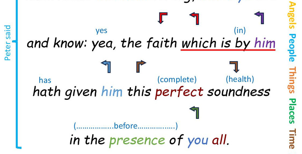 Act 3:16 And his name through faith in his name hath made this man strong, whom ye see and know: yea, the faith which is by him hath given him this perfect soundness in the presence of you all.