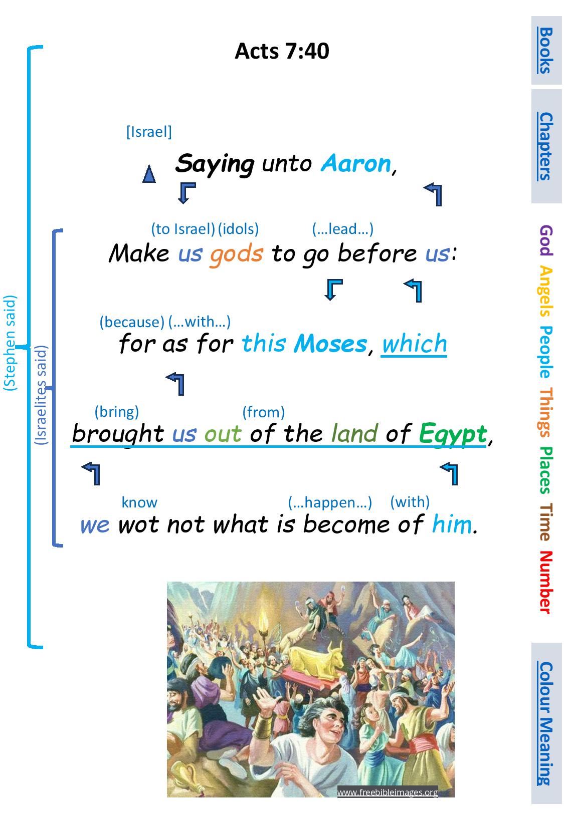Act 7:40 Saying unto Aaron, Make us gods to go before us: for as for this Moses, which brought us out of the land of Egypt, we wot not what is become of him.