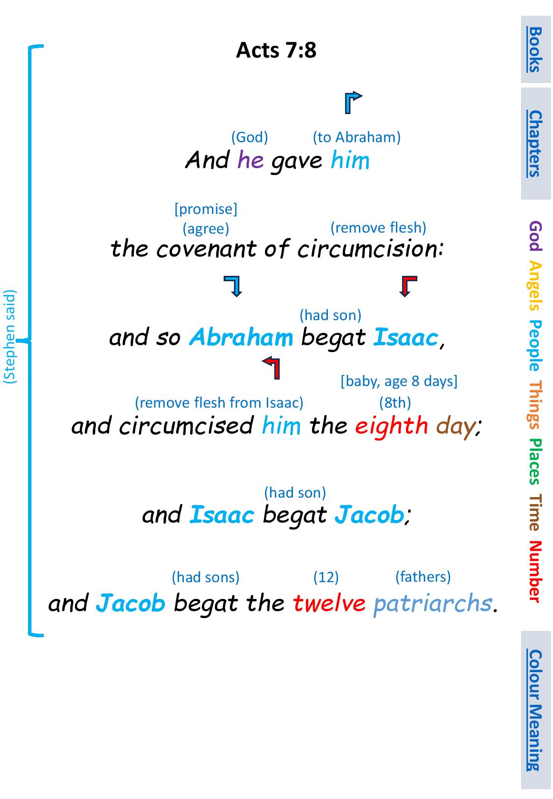 Act 7:8 And he gave him the covenant of circumcision: and so Abraham begat Isaac, and circumcised him the eighth day; and Isaac begat Jacob; and Jacob begat the twelve patriarchs.