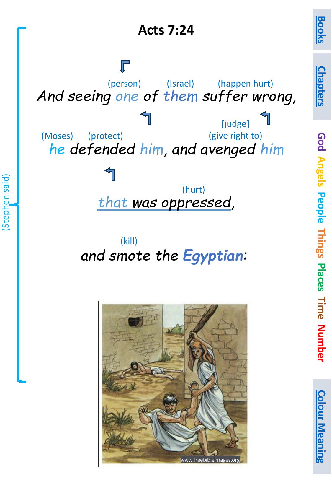 Act 7:24 And seeing one of them suffer wrong, he defended him, and avenged him that was oppressed, and smote the Egyptian: