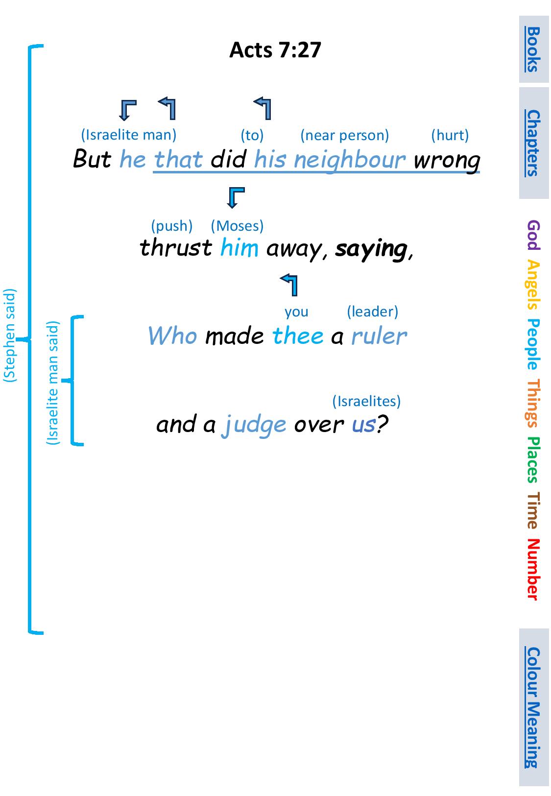 Act 7:27 But he that did his neighbour wrong thrust him away, saying, Who made thee a ruler and a judge over us?