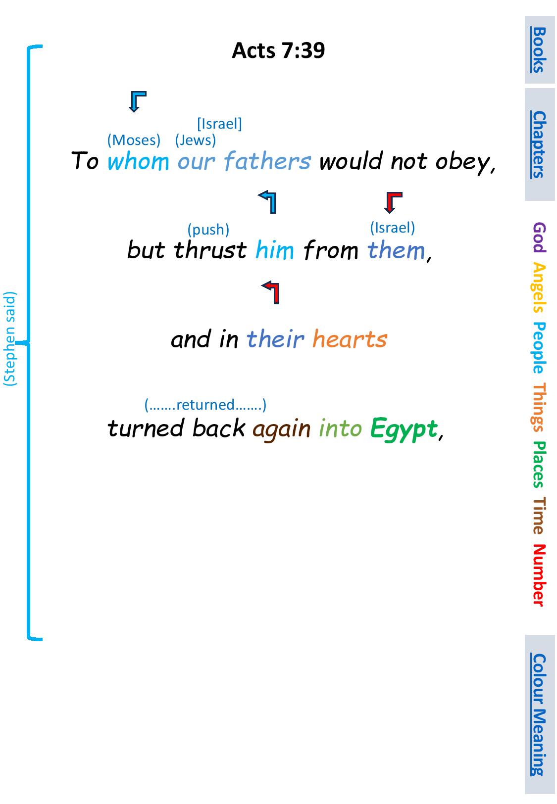 Act 7:39 To whom our fathers would not obey, but thrust him from them, and in their hearts turned back again into Egypt,
