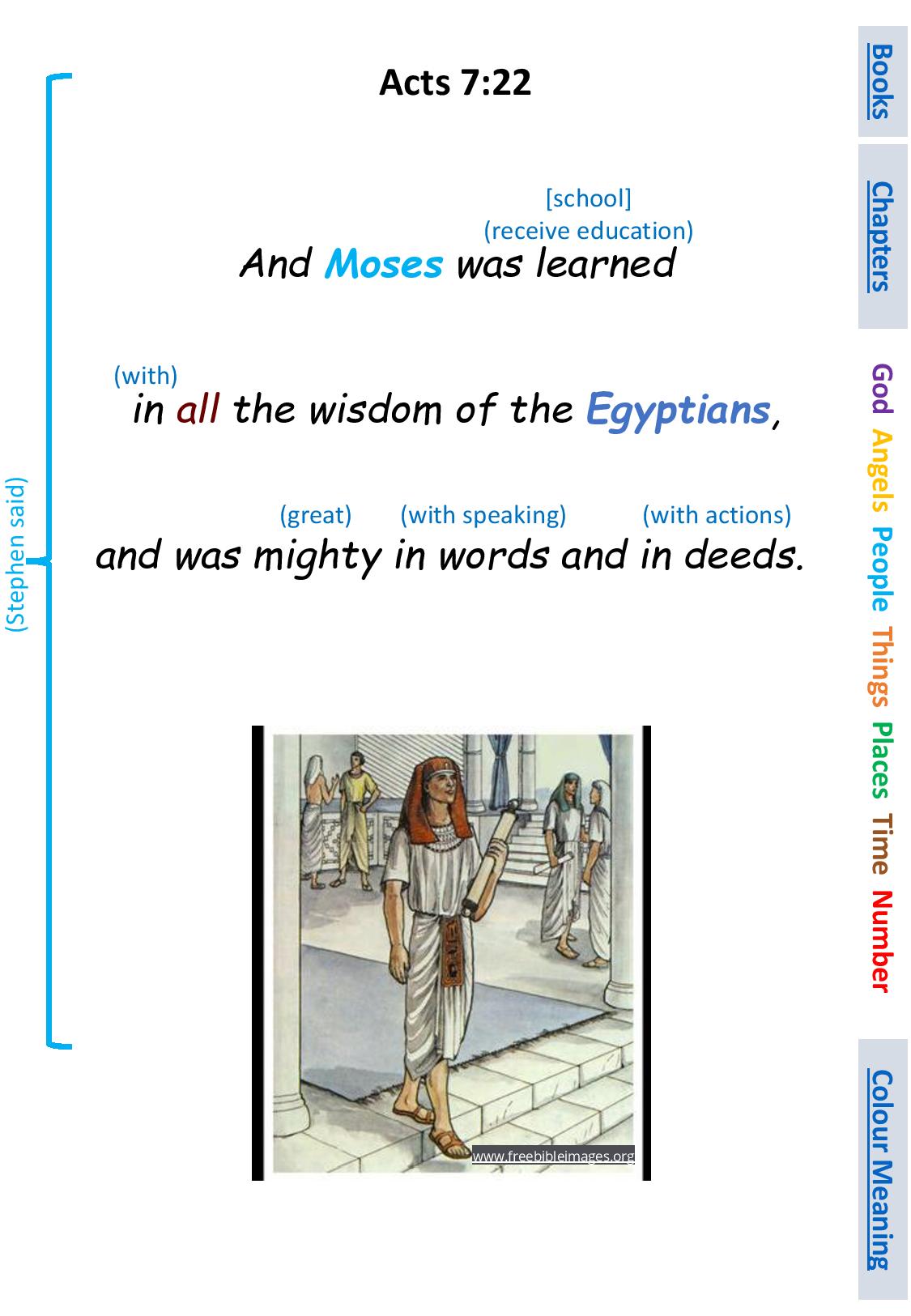 Act 7:22 And Moses was learned in all the wisdom of the Egyptians, and was mighty in words and in deeds.
