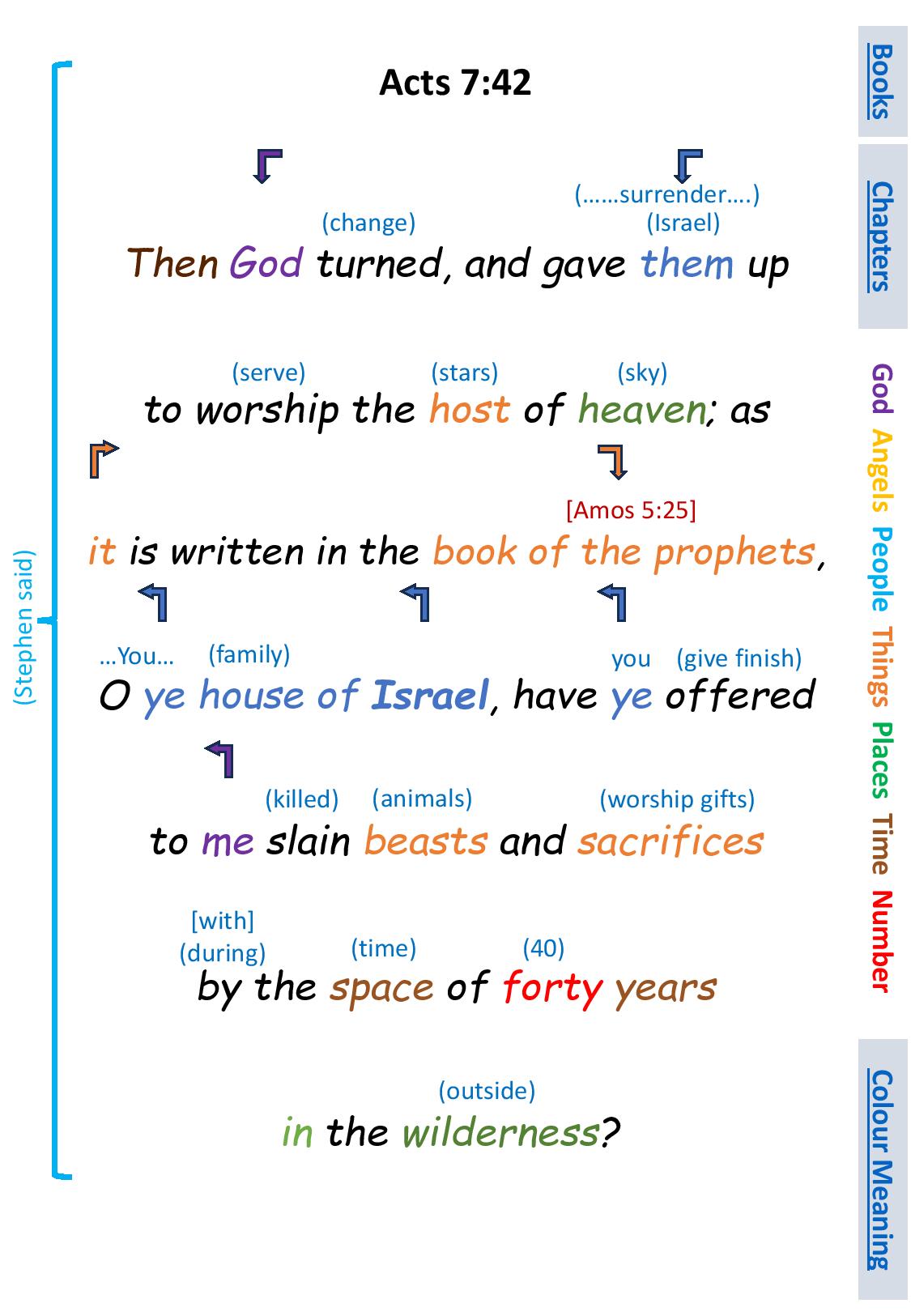 Act 7:42 Then God turned, and gave them up to worship the host of heaven; as it is written in the book of the prophets, O ye house of Israel, have ye offered to me slain beasts and sacrifices by the space of forty years in the wilderness?