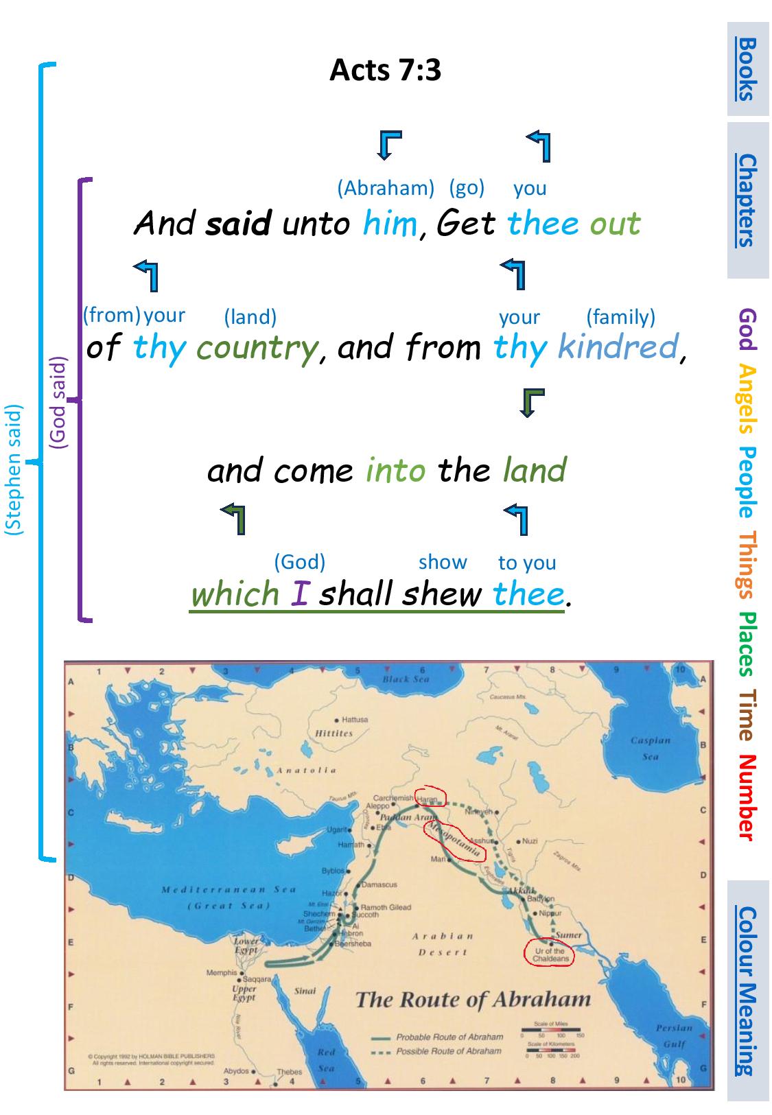 Act 7:3 And said unto him, Get thee out of thy country, and from thy kindred, and come into the land which I shall shew thee.
