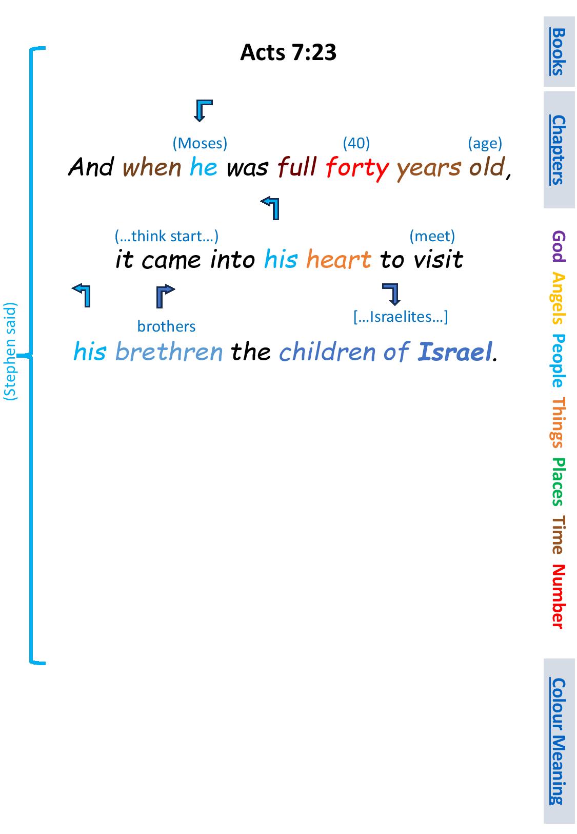 Act 7:23 And when he was full forty years old, it came into his heart to visit his brethren the children of Israel.