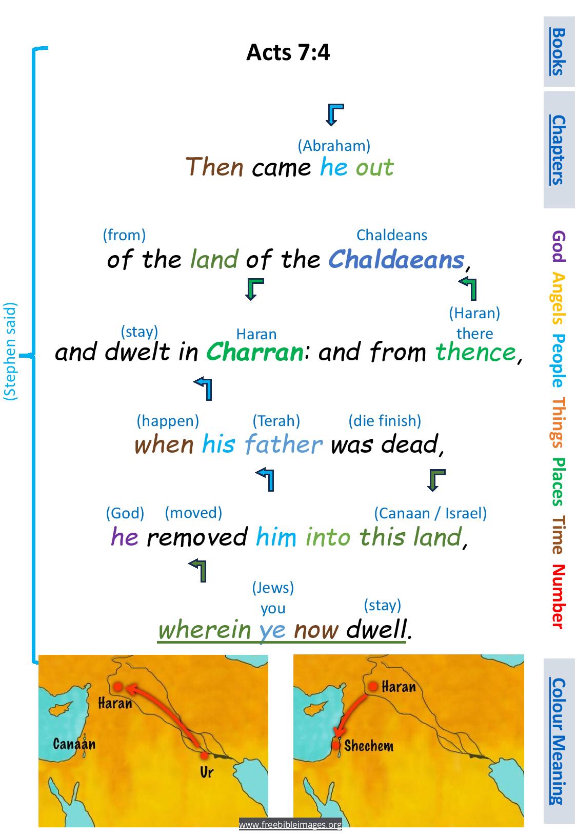Act 7:4 Then came he out of the land of the Chaldaeans, and dwelt in Charran: and from thence, when his father was dead, he removed him into this land, wherein ye now dwell.
