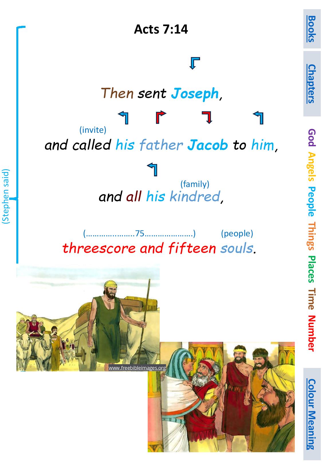 Act 7:14 Then sent Joseph, and called his father Jacob to him, and all his kindred, threescore and fifteen souls.