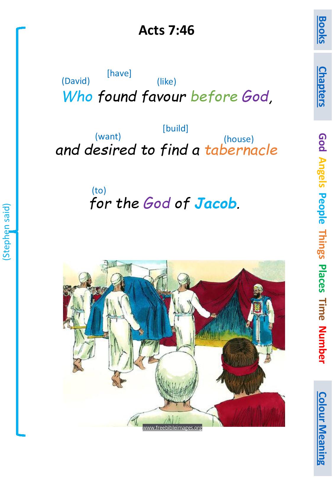 Act 7:46 Who found favour before God, and desired to find a tabernacle for the God of Jacob.