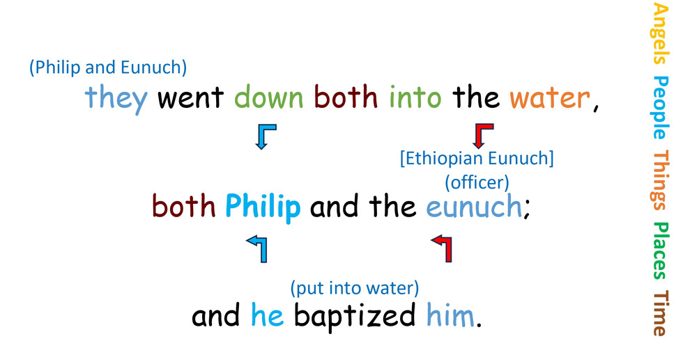 Act 8:38 And he commanded the chariot to stand still: and they went down both into the water, both Philip and the eunuch; and he baptized him.