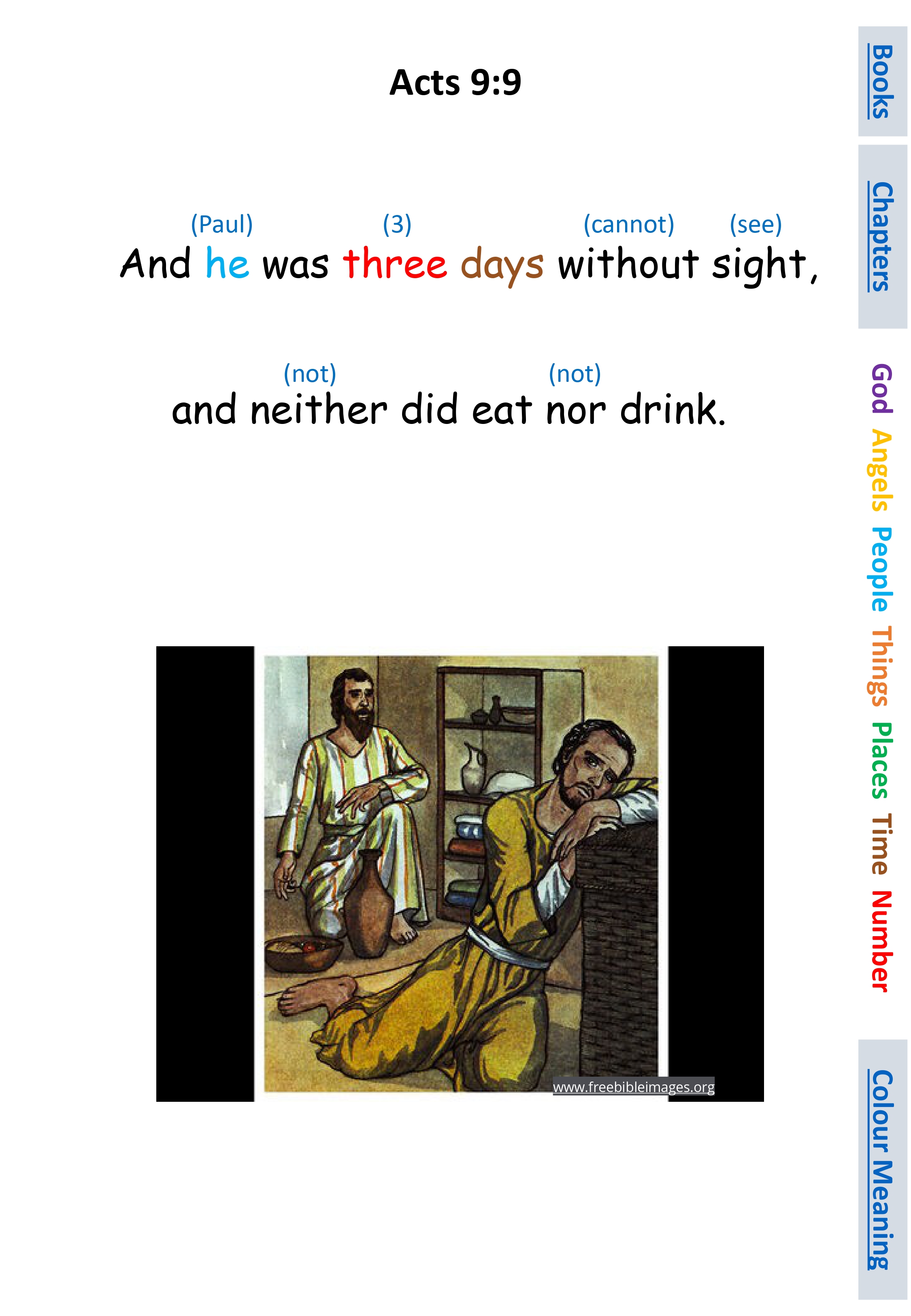 Act 9:9 And he was three days without sight, and neither did eat nor drink.