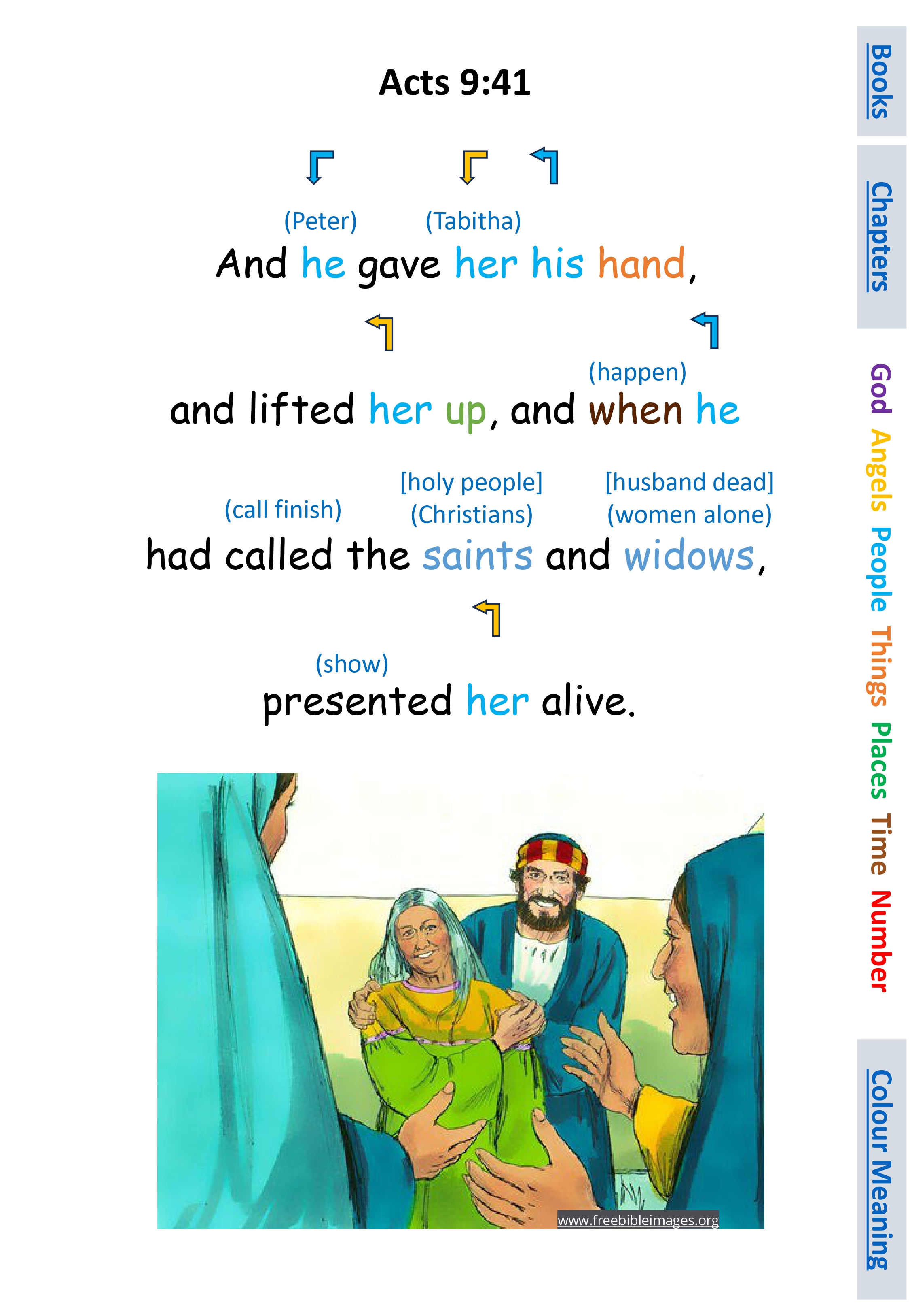 Act 9:41 And he gave her his hand, and lifted her up, and when he had called the saints and widows, presented her alive.