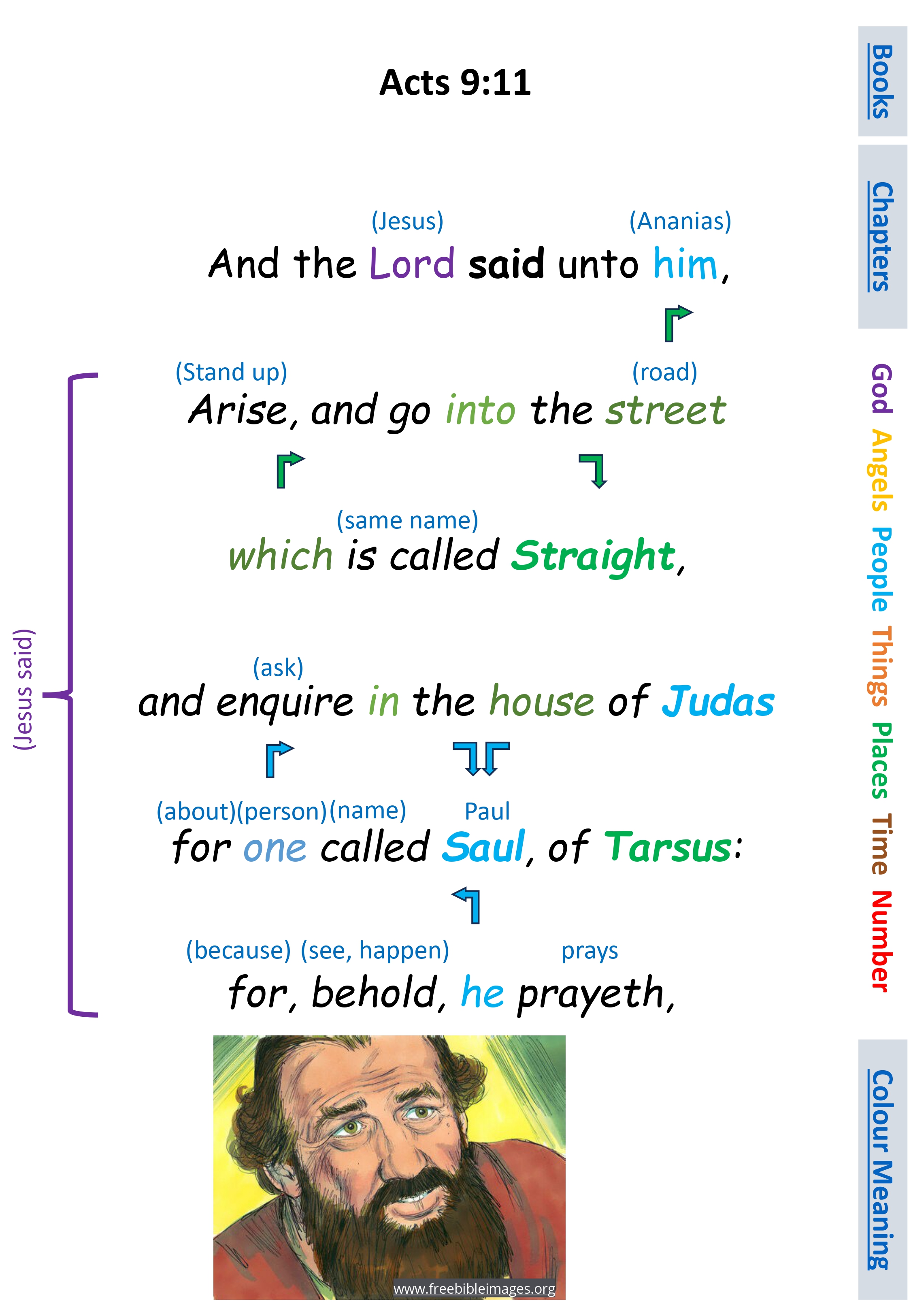 Act 9:11 And the Lord said unto him, Arise, and go into the street which is called Straight, and enquire in the house of Judas for one called Saul, of Tarsus: for, behold, he prayeth,