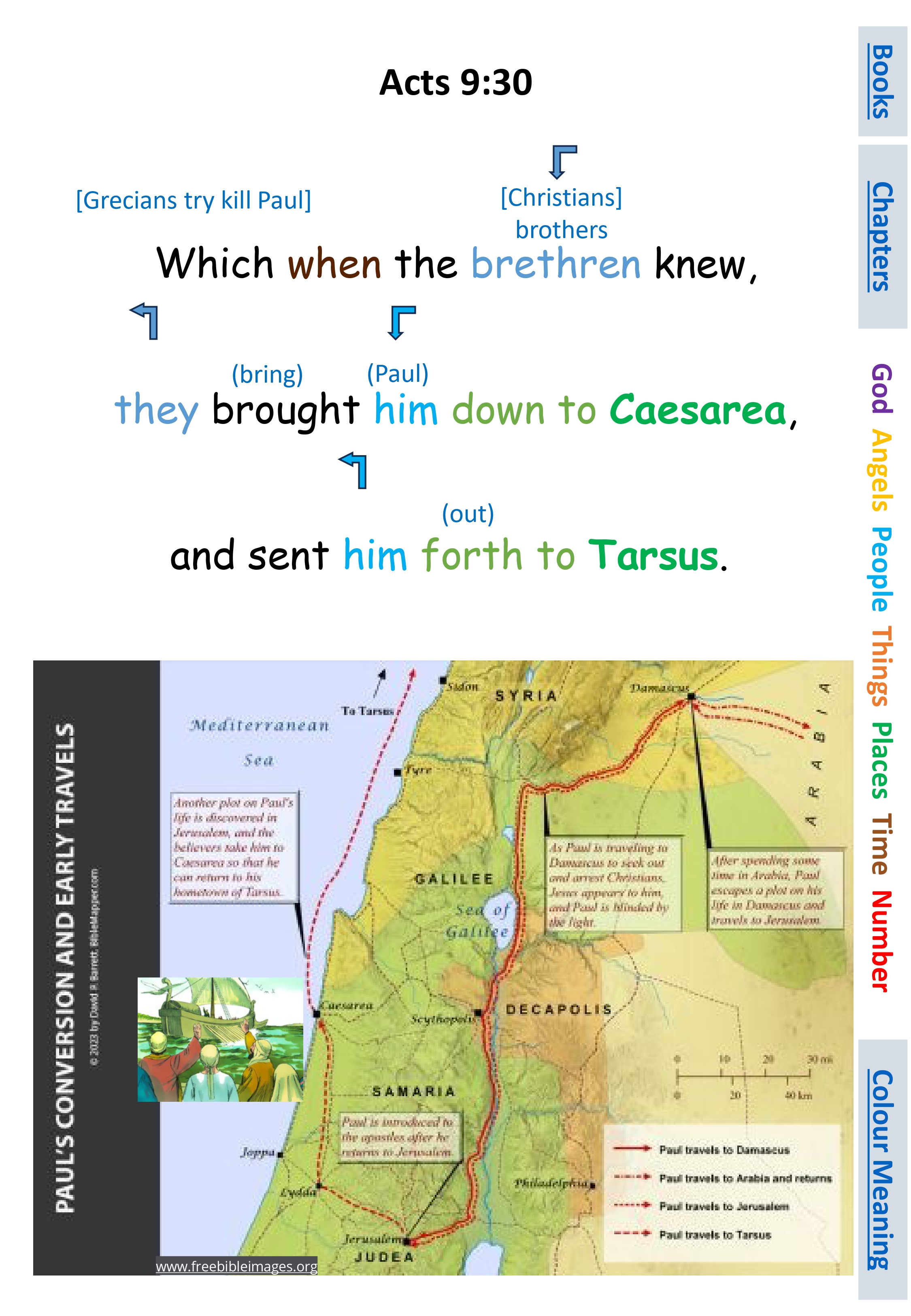 Act 9:30 Which when the brethren knew, they brought him down to Caesarea, and sent him forth to Tarsus.